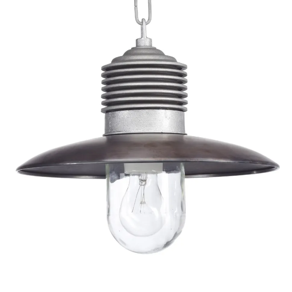 Robuuste Klaus buiten hanglamp voor werkplaatsverlichting Dankzij de robuuste afwerking en beschermingsgraad IP44 is de Klaus buiten hanglamp bijzonder veelzijdig. Ze kan niet alleen buiten worden gebruikt, maar ook in werkplaatsen of fabriekshallen. Het industrieel geïnspireerde ontwerp en het gebruik van aluminium en glas zorgen ervoor dat ze naadloos opgaat in de industriële sfeer. Dankzij de heldere glazen kap kun je profiteren van het heldere licht van de Klaus hanglamp. De kettingophanging is ook van aluminium. Een kabel van 1 meter is inbegrepen.