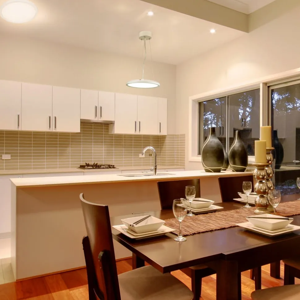 SylRadiance ronde LED plafondlamp – algemene verlichting voor grote oppervlakken, dimbaar via wandschakelaar De SylRadiance LED plafondlamp is een veelzijdige lichtbron voor woonkamers en lounges. Ze is gemaakt van PMMA kunststof in een neutraal design – rond, plat en wit. De geïntegreerde LED lamp produceert warmwit licht dat dient als algemene verlichting voor grote oppervlakken en creëert ook een halo-effect dat de armatuur visueel onderscheidt van de achtergrond. De spatwaterbescherming maakt ook gebruik in vochtige ruimtes en badkamers mogelijk – Instelbaar via wandschakelaar in drie vermogensniveaus: 100 % / 50 % / 10 % – Ophangset voor gebruik als hanglamp apart verkrijgbaar – Beschermingsgraad: IP54 (plafondbevestiging) / IP20 (hanglampbevestiging)
