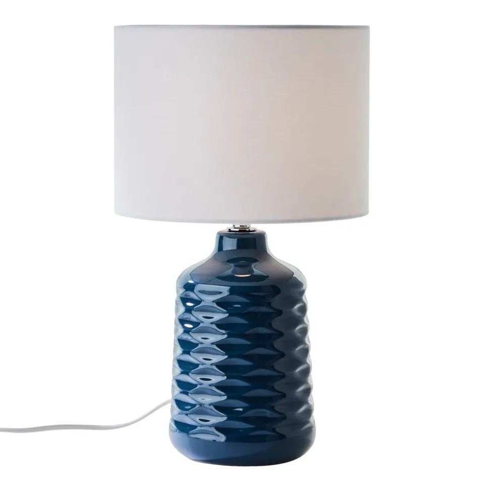 Tafellamp Ilysa stoffen kap wit, keramische voet