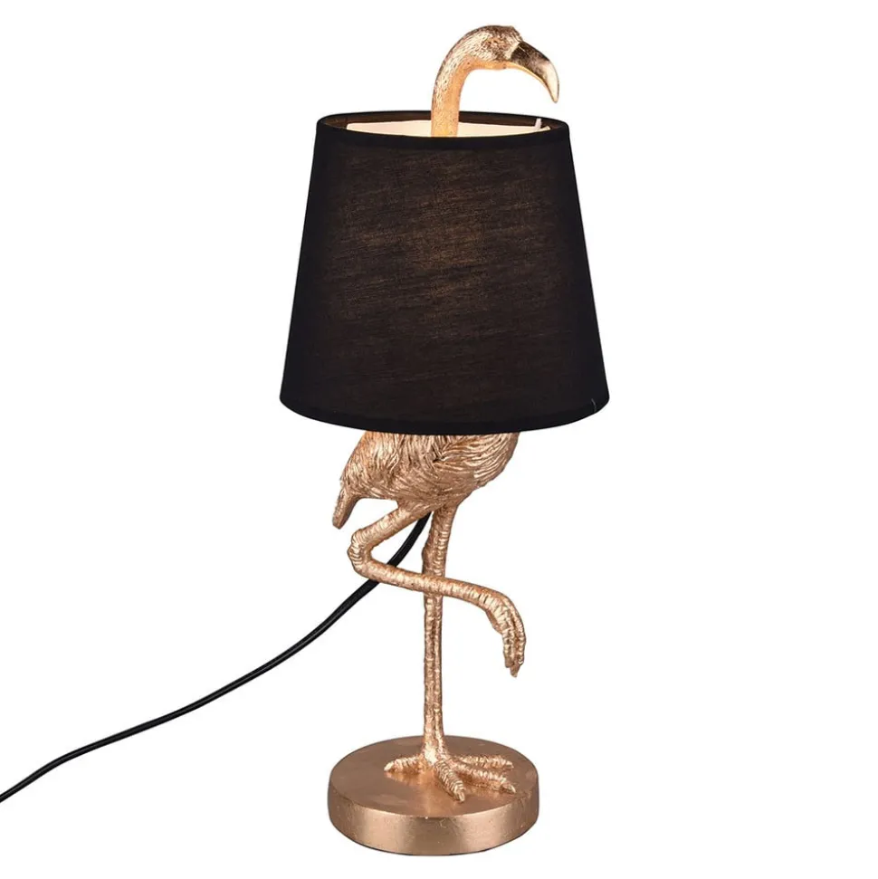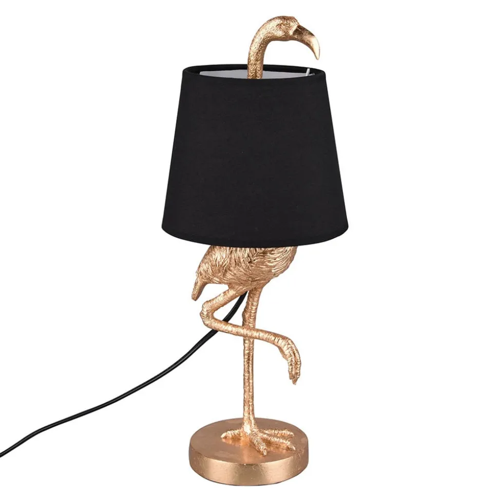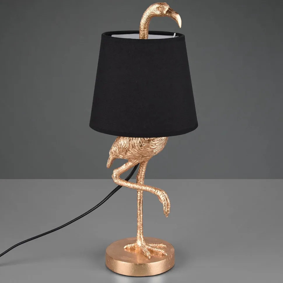 Tafellamp Lola met flamingo-figuur, zwart/goud