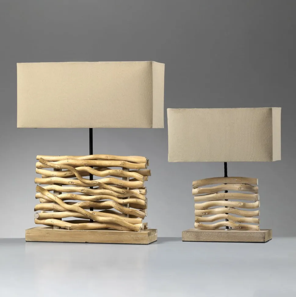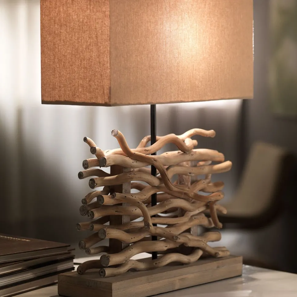 Tafellamp Marica: harmonieuze combinatie van stoffen kap en hout