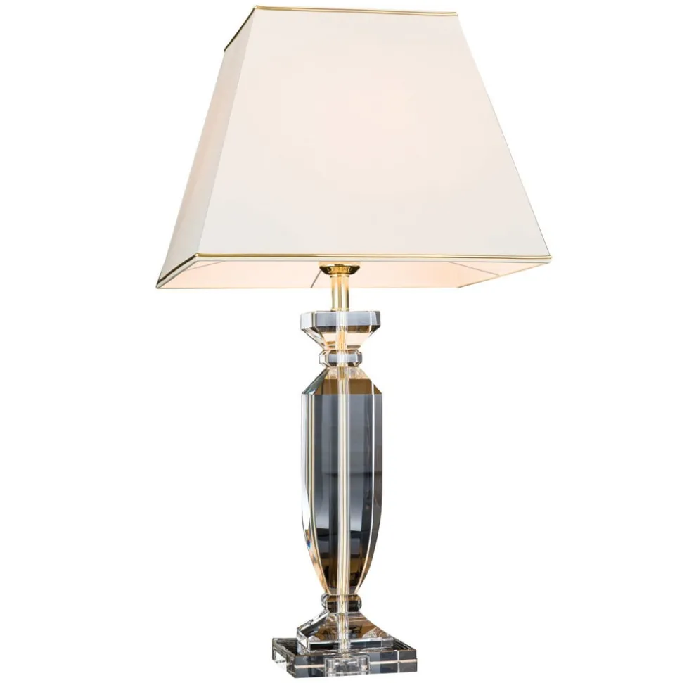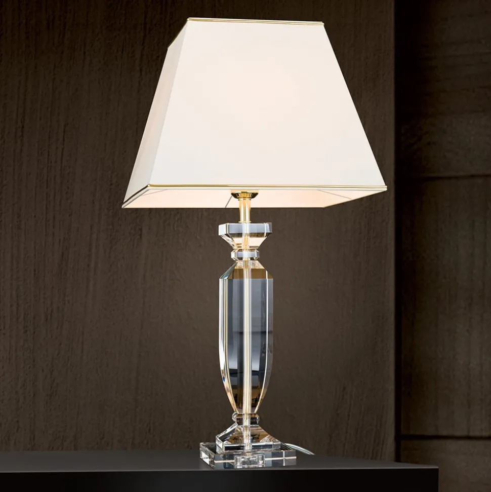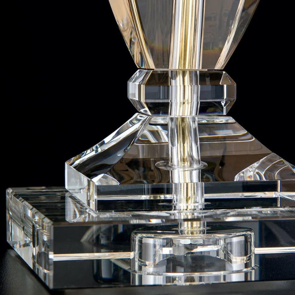 Edel vormgegeven tafellamp Pokal met stoffen kap en K9 kristal