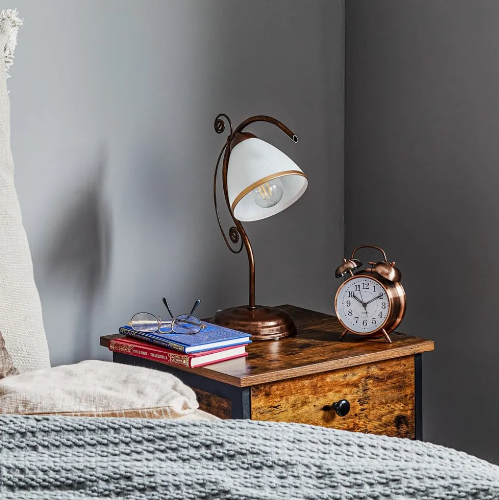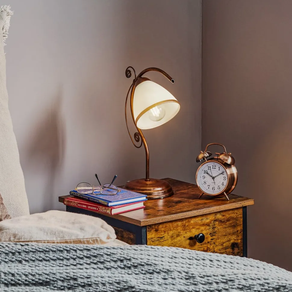 De tafellamp Roma combineert antieke charme met moderne functionaliteit en is een blikvanger in elke woonkamer, slaapkamer of eetkamer. De lamp is gemaakt van hoogwaardig staal en glas en valt op door zijn tijdloze elegantie in de kleuren wit en bruin. De zorgvuldige afwerking en het elegante ontwerp maken de lamp tot een blikvanger die elke ruimte een bijzonder tintje geeft.