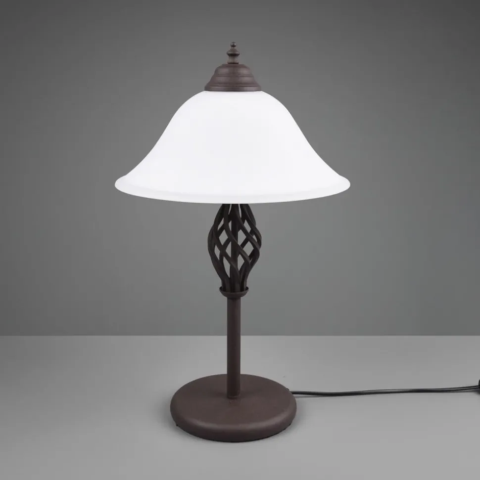Rustica tafellamp met roestkleurig frame en glazen kap