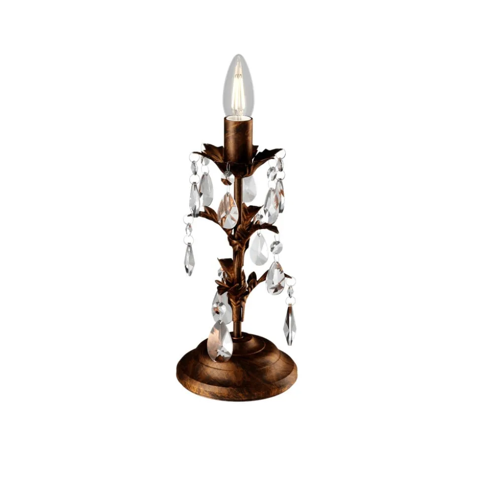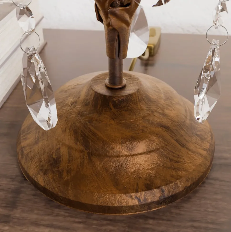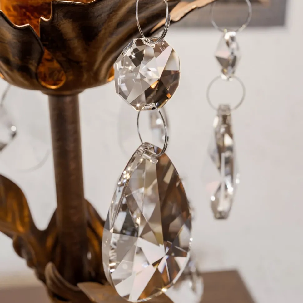 Tafellamp Teresa: elegantie en schittering door gesmeed ijzer en kristalglas
