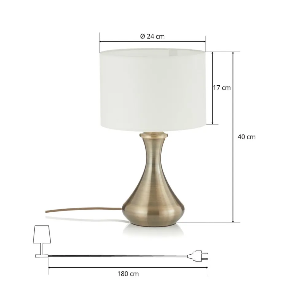 De Touch 2750 tafellamp straalt eenvoudige elegantie uit met een witte stoffen kap en een metalen voet. Hij is perfect geschikt voor extra verlichting in moderne woonkamers, eetkamers of ook als kleine lichtbron, bijvoorbeeld bij het bed in de slaapkamer. Functionaliteit is hier de beslissende factor: een kleine aanraking op de voet van de 2750 tafellamp is voldoende, en de lamp kan dankzij een geïntegreerde aanraakfunctie worden in- en uitgeschakeld en in drie niveaus worden gedimd. Dit is perfecte verlichting om ’s avonds te lezen, want het is niet nodig naar een schakelaar op het snoer te zoeken en er is slechts één handbeweging nodig om het licht naar eigen behoefte in te stellen