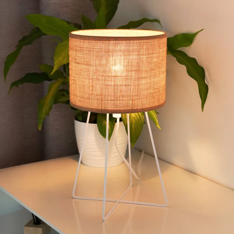 Tafellamp Trixi met draadframe wit/beige, stof, E14