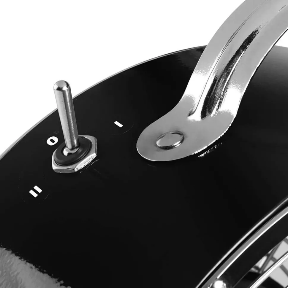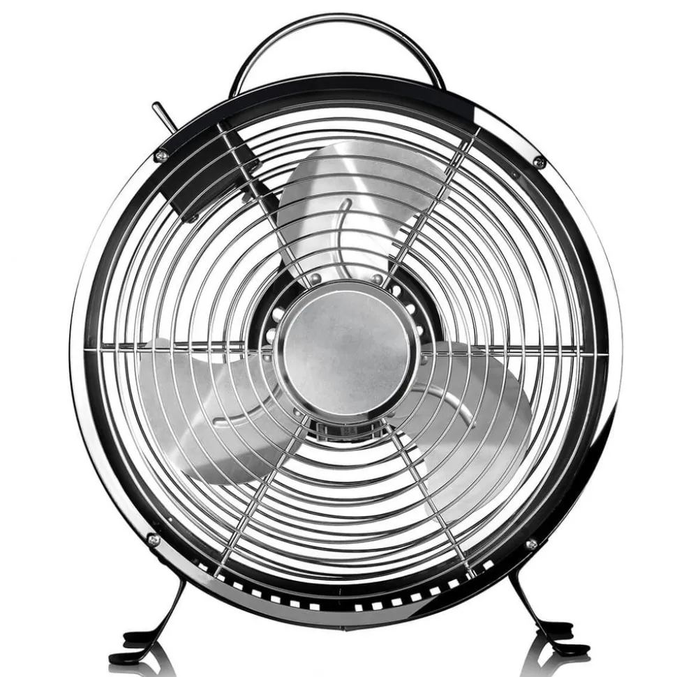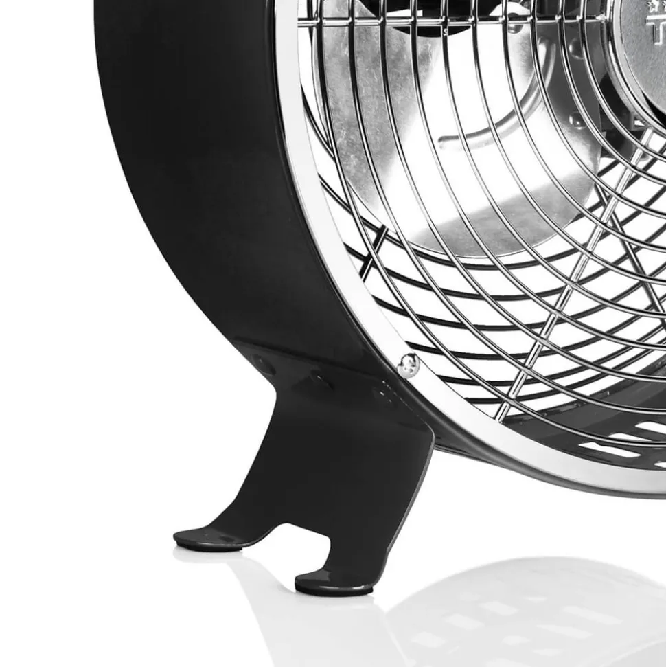 Trendy tafelventilator VE5966 in zwart De behuizing van de metalen VE59663 tafelventilator is diepzwart geschilderd. Mite zijn trendy Vintage design is hij niet alleen een luchtverfrisser in elke kamer, maar ook een decoratief Element. Uitgerust met een praktische draaggreep. Functies Oververhittingsbeveiliging is geïntegreerd. Er kunnen twee snelheden worden geselecteerd. Technische gegevens Vermogen: 20 watt Snelheid: 1.500/1.800 MINERS Geluidsniveau: 49,5 dB Luchtstroom: 890 m³/uur