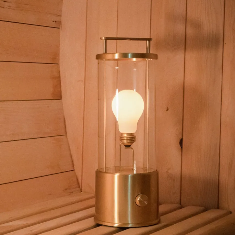 Muse tafellamp van massief messing met LED lamp en dimmer Deze speciale editie van de Muse tafellamp van Tala is gemaakt van massief messing en borosilicaatglas. De lamp combineert klassieke lantaarnesthetiek met ultramoderne technologie en straalt een gevoel van luxe uit. De lamp wordt geleverd met een opaalwitte LED lamp met dimbare functie en is uitgerust met een draaidimmer aan de voet van het armatuur. Als het licht wordt gedimd, wordt de lichtkleur warmer. De draagbare lamp is uitgerust met een oplaadbare batterij met een lange levensduur en kan binnen en buiten zonder stroomaansluiting worden gebruikt, wat maximale flexibiliteit biedt. De oplaadbare batterij kan worden opgeladen met de USB-C oplaadkabel die wordt meegeleverd met een geschikte adapter (niet meegeleverd). De lamp is uitgerust met een oplaadindicator. Als de batterijlading minder dan 10% is, knippert de indicator en moet de batterij worden opgeladen – Li-Ion 13,2 Ah 3,7V batterij – met USB-C oplaadkabel (zonder adapter)