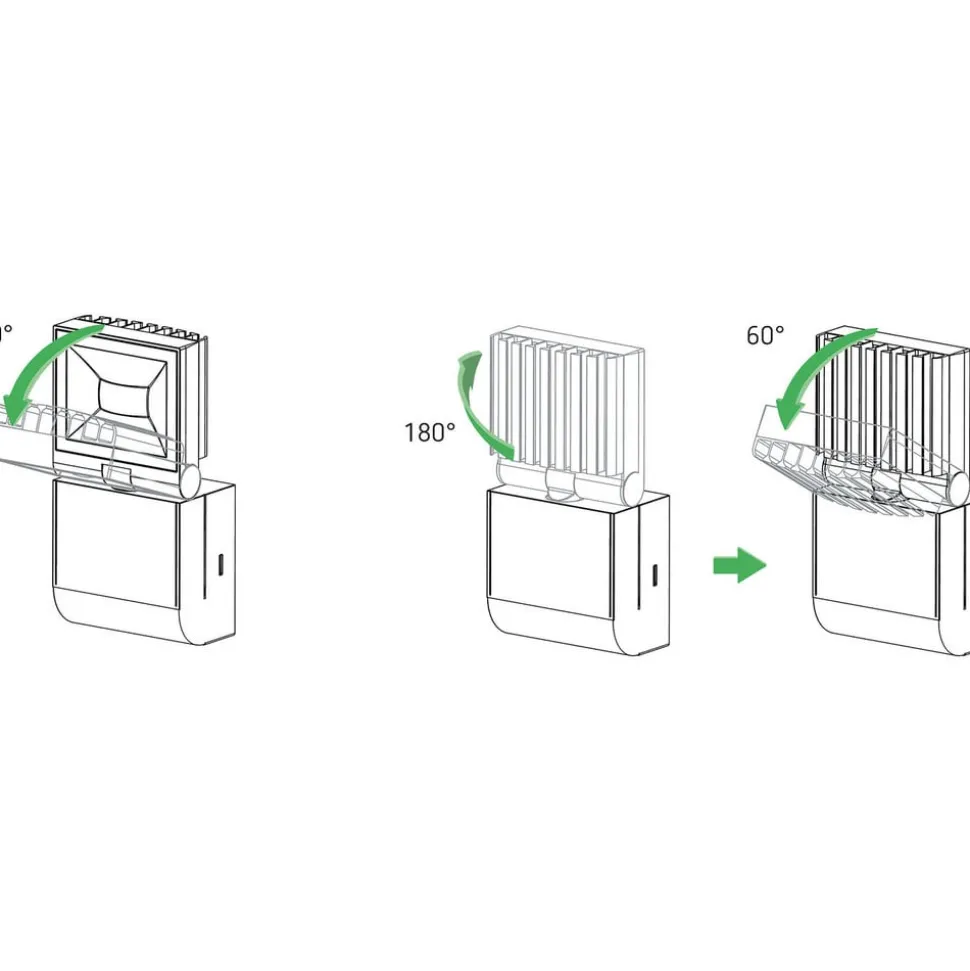 DeLeda S10L outdoor LED spot is uitgerust met een krachtige LED-lichtbron die de omgeving helder en veilig verlicht met intens, universeel wit licht. De draaibare en kantelbare schijnwerperkop zorgt voor een uitgebreide verlichting zowel naar de zijkant (± 40°) als naar beneden (70°). Hij kan ook 180° gedraaid worden om de muur te verlichten.