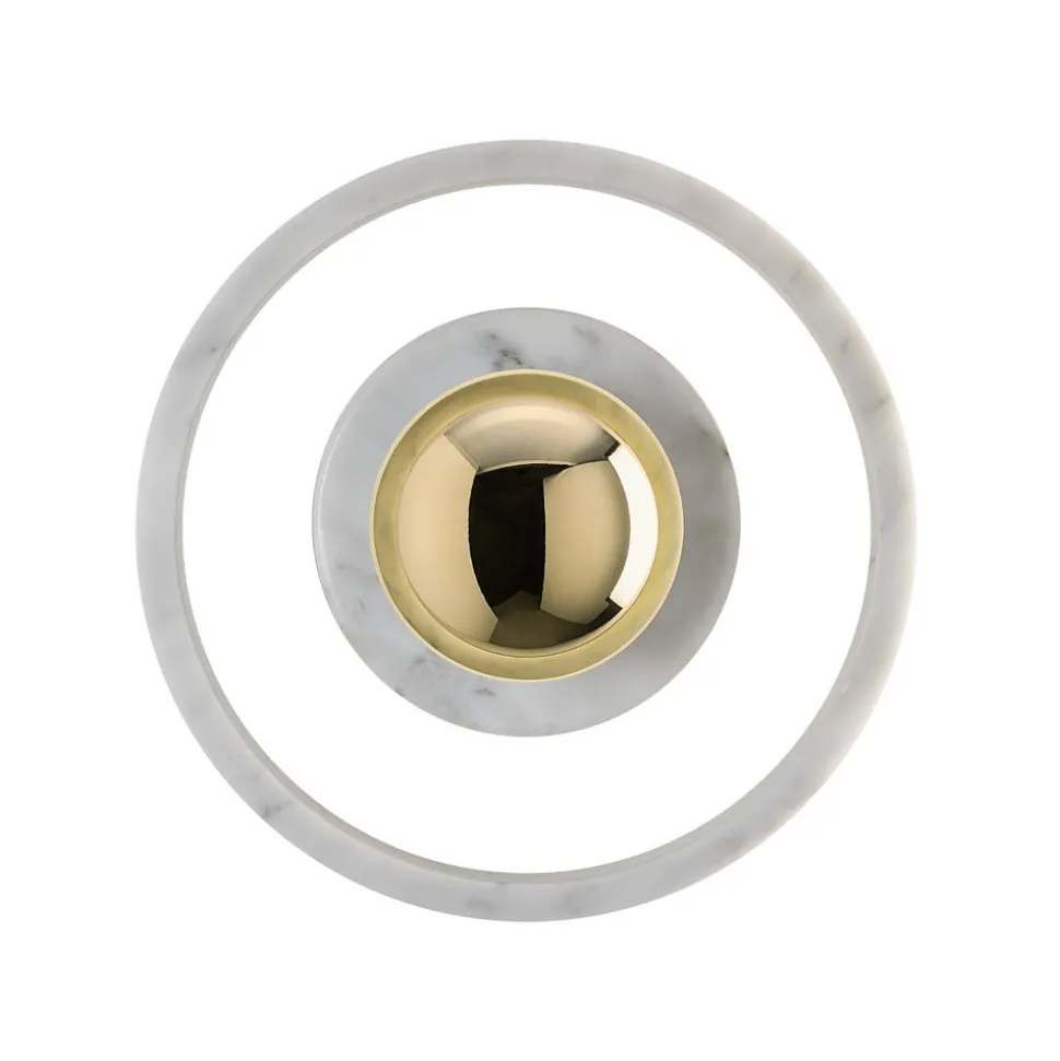 Beschermd tegen spatwater: De Stone Wall LED wandlamp van marmer, glas en staal In het middelpunt van de Stone Wall LED wandlamp staat de gouden kap van glas en staal. Door haar kleine formaat blijft ze discreet op de achtergrond. De andere delen van deze wandlamp zijn gemaakt van wit marmer, waarvan de fijne structuur van de Stone Wall een blikvanger maakt, zelfs als deze is uitgeschakeld. Dit is hetzelfde marmer dat werd gebruikt om de beroemde Taj Mahal in India te bouwen. Hoewel de Stone Wall dus vrij zwaar en duurzaam is, geeft het artistieke ontwerp hem een zekere lichtheid. Dankzij de beschermingsgraad IP44 is hij ook beschermd tegen spatwater, waardoor hij ook in de badkamer kan worden geïnstalleerd. Binnenin worden LED’s van hoge kwaliteit gebruikt, die zorgen voor een aangename verlichting met warmwit licht.