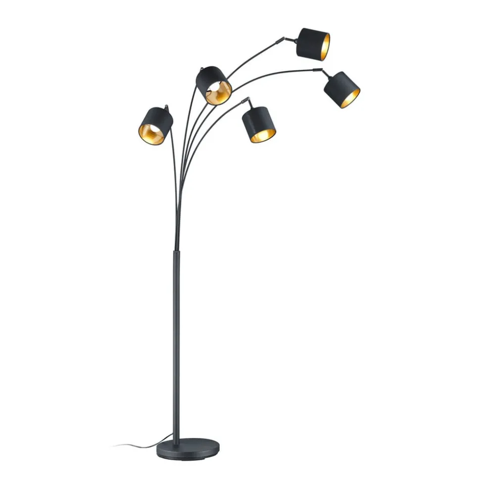Tommy vloerlamp, zwart/goud, hoogte 200 cm, 5-lamps, stof