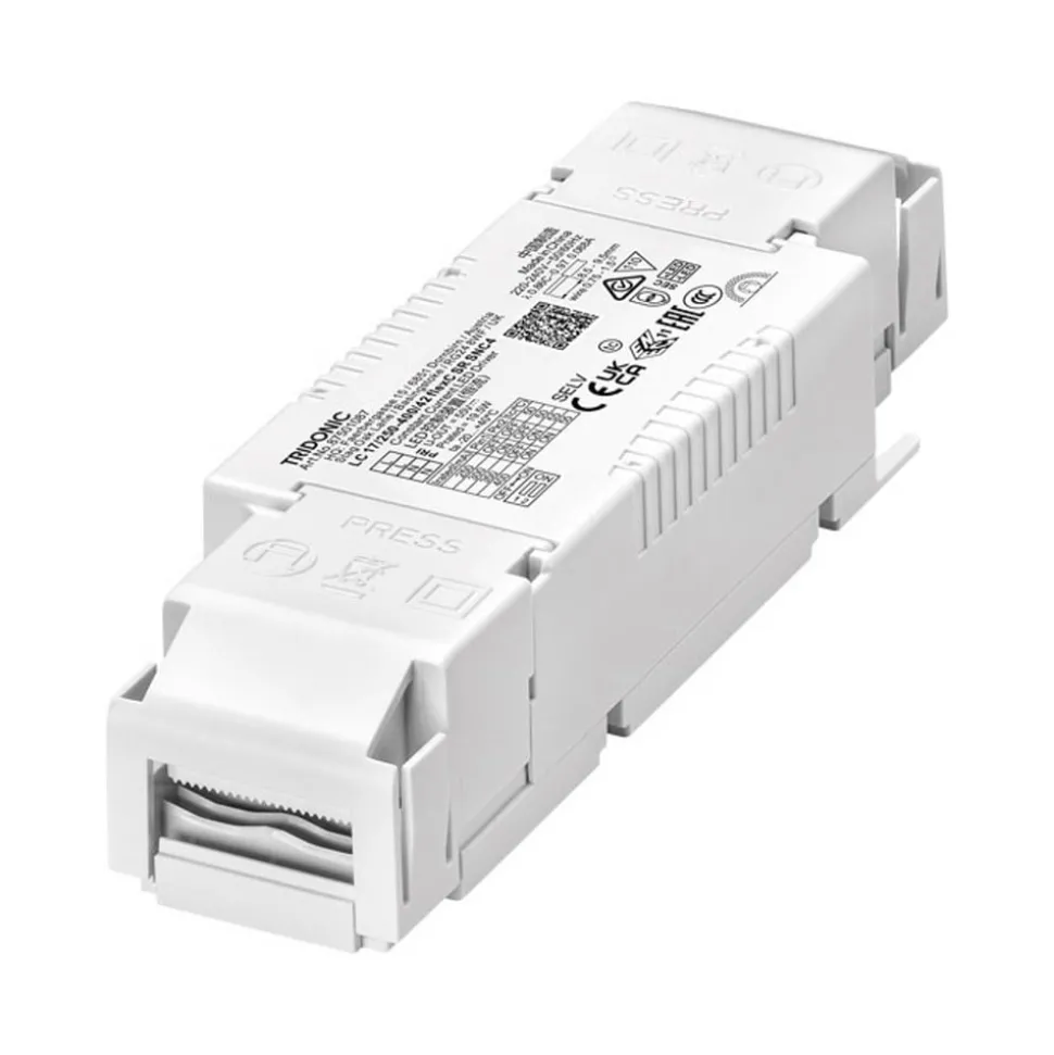 Constante stroom LED driver LC flexC SR SNC4 met instelbare uitgangsstroom, IP20 De LED driver LC flexC SR SNC4 van TRIDONIC is geschikt voor LED lampen met beschermingsklasse II. De uitgangsstroom kan naar wens worden ingesteld met een DIP-schakelaar (250, 300, 350 of 400 mA). Of het nu gaat om een spot of downlight in de detailhandel of voor een paneel op kantoor: de LC flexC SR SNC4 LED driver kan universeel worden gebruikt als een onafhankelijke LED driver met vaste uitgang.