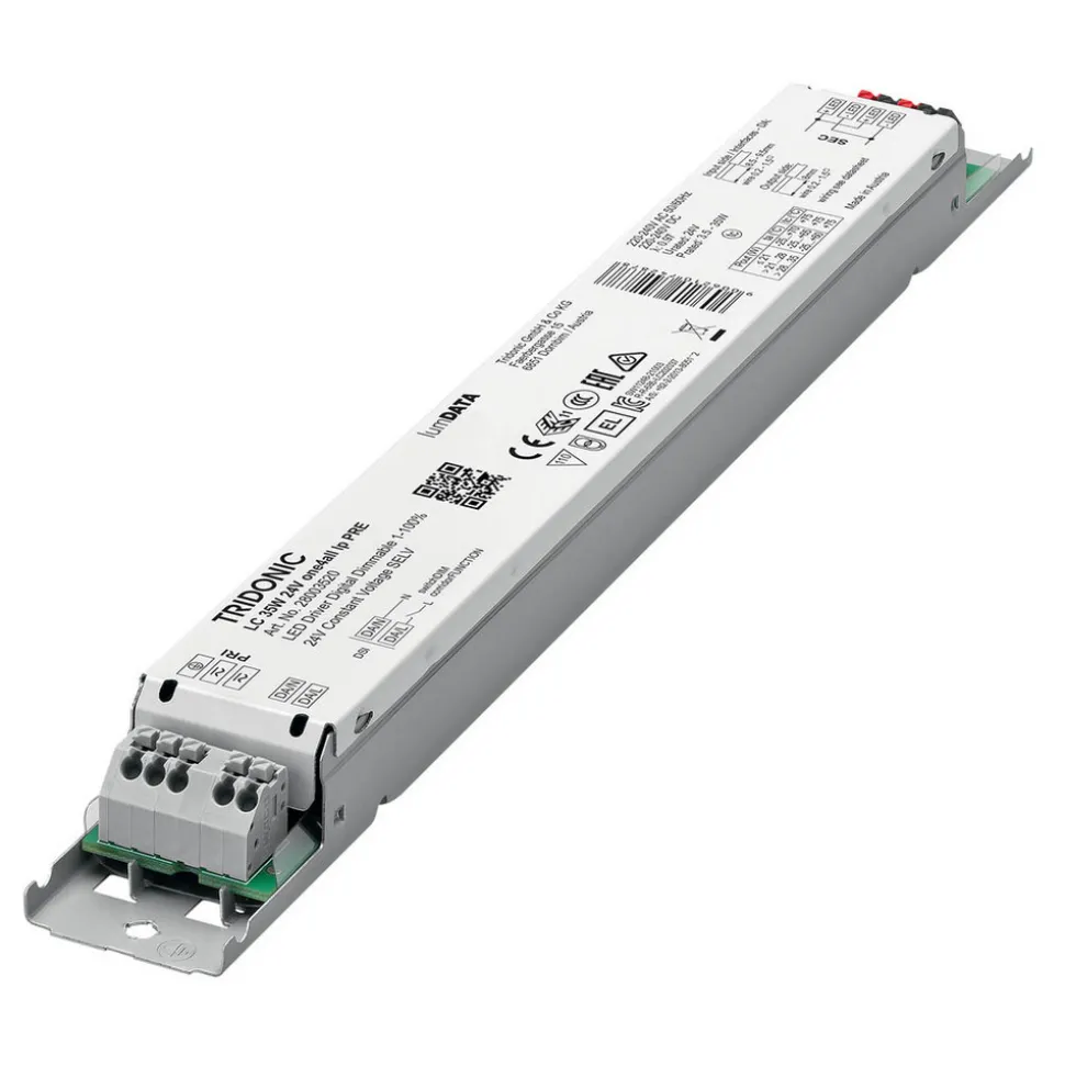 Constante spanning LED-driver LC 24V one4all lp PRE IP20 van TRIDONIC voor variabele regeling – slanke, vlakke, low-profile versie