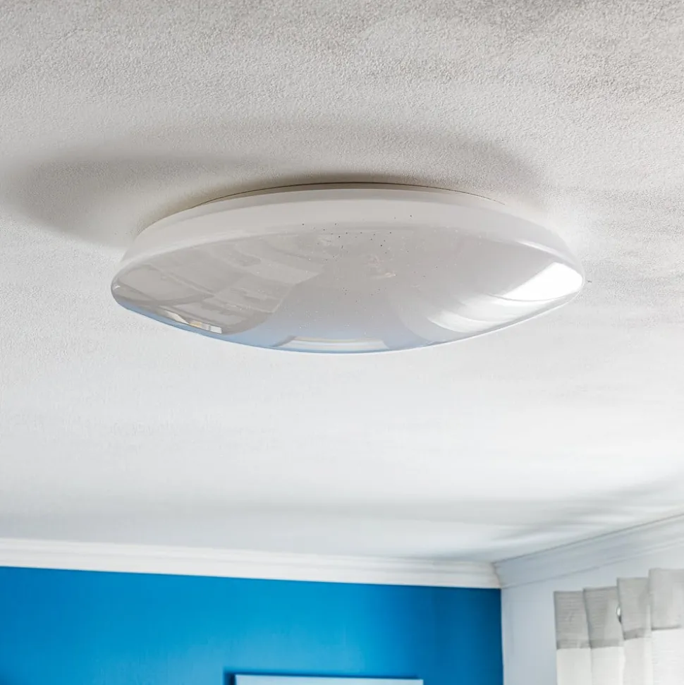 Bedienbare Charly LED plafondlamp met kristaleffect en nachtlichtfunctieDankzij de moderne WiZ-technologie kan de Charly LED plafondlamp met een app, een spraakassistent of ook met de meegeleverde afstandsbediening worden bediend. Op basis van een eenvoudig, rond design is een sprankelend kristaleffect ingebouwd, dat heel goed tot zijn recht komt wanneer het licht wordt ingeschakeld. Qua toepassing is de armatuur bijvoorbeeld ideaal in de slaapkamer, omdat een nachtlampje ook via de afstandsbediening met één druk op de knop bereikbaar is. Dankzij WiZ kan Charly via het WLAN thuis worden verbonden met de bijbehorende WiZ-app. Hier zijn vele functies mogelijk, waaronder het instellen van dynamische lichtmodi. Verschillende wittinten of een keuze uit ontelbare kleurschakeringen – in de app zijn er nauwelijks grenzen aan de creativiteit.Functies / Compatibiliteit:- Instellen van dynamische lichtprogramma’s uit 16 miljoen kleuren- Aanmaken van lichtschema’s en armatuurgroepen- Wijzigen van de lichttemperatuur (64..dimmen zonder extra installatie- WiZ-toegang op afstand via gecodeerde cloudverbinding (geen bridge of hub nodig)- Bedienbaar via WiZ-app (smartphone of tablet), lichtschakelaar, WiZ-afstandsbediening (inbegrepen) of via spraakbesturing (Amazon Alexa of Google Home)