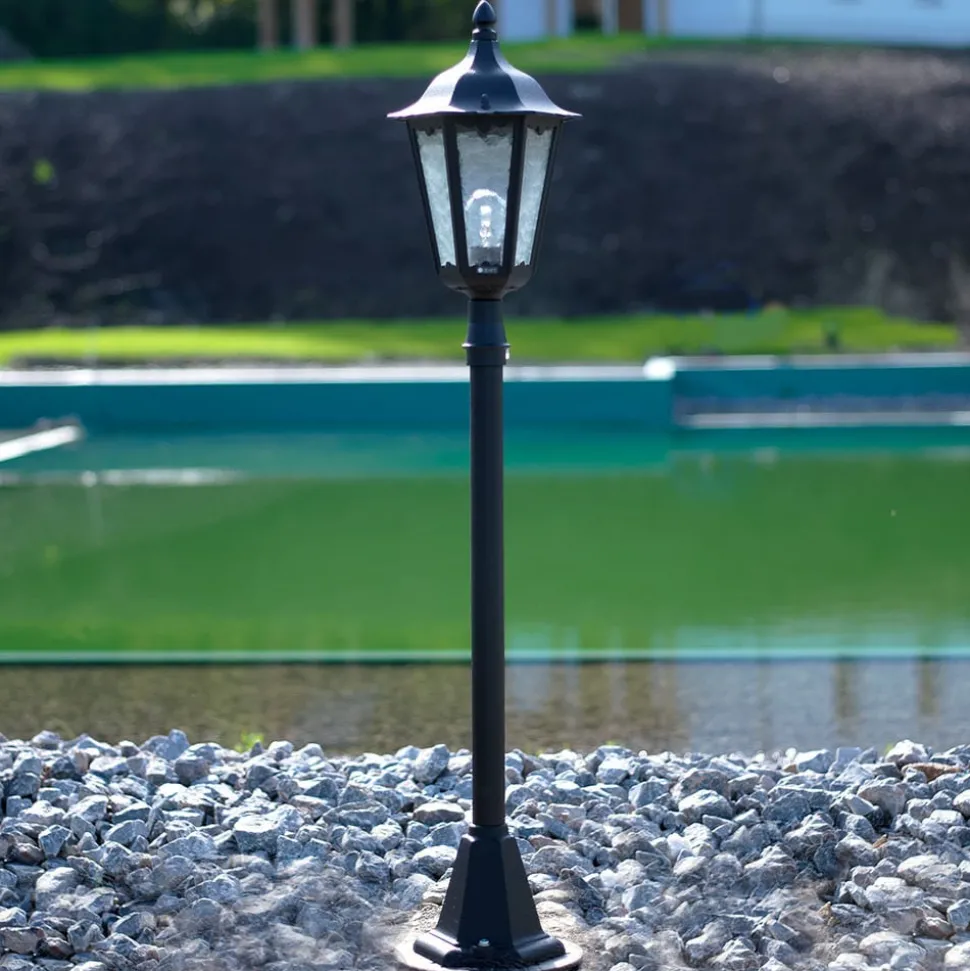 De lampen van deze fabrikant voldoen aan de hoogste kwaliteitsnormen, aangezien ze alleen van geselecteerde materialen en in Duitsland zijn gemaakt. De padverlichting 4142, waarvan de kap in het klassieke lantaarndesign is uitgevoerd in gegoten aluminium en kathedraalglas. De schaduw met de heldere glazen inserts zorgt ervoor dat het licht zo veel mogelijk in de omgeving kan worden verspreid. Zo is een veilige en goede verlichting gegarandeerd.