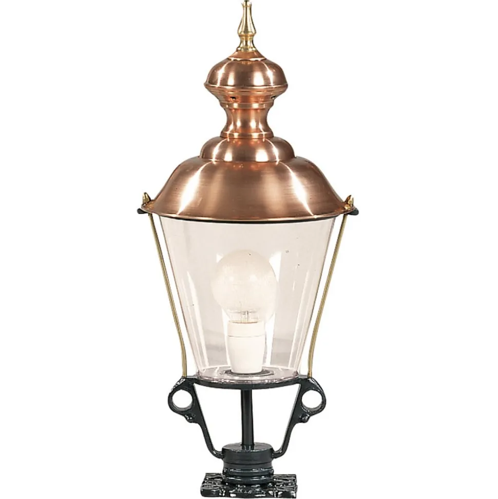 Tuinpadverlichting K43 met stijlvolle koperen afdekking Naast een passende verlichtingsfunctie voldoet deze lamp ook aan decoratieve eisen: het donkere metaal ziet er bijzonder geslaagd uit in combinatie met de koperen afdekking. De grote acryloppervlakken zorgen voor voldoende verlichting en dus voor meer veiligheid in de buitenruimte. Opmerking: De lamp wordt zonder voetplaat geleverd. Installatievoorschrift: De lamp wordt rechtstreeks op de fitting aangesloten. Wire raadt aan om de installatie te laten uitvoeren door een gekwalificeerde elektricien. De fabrikant raadt aan om hiervoor rubberen kabels te gebruiken.