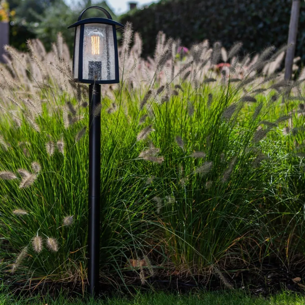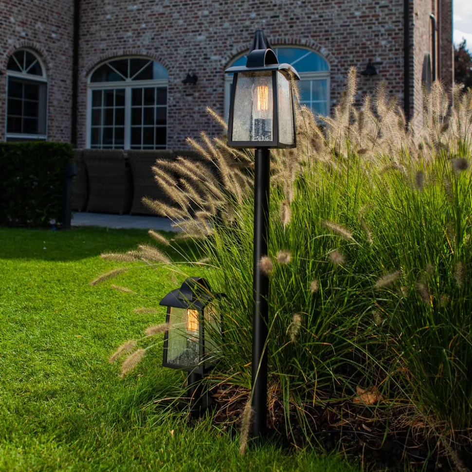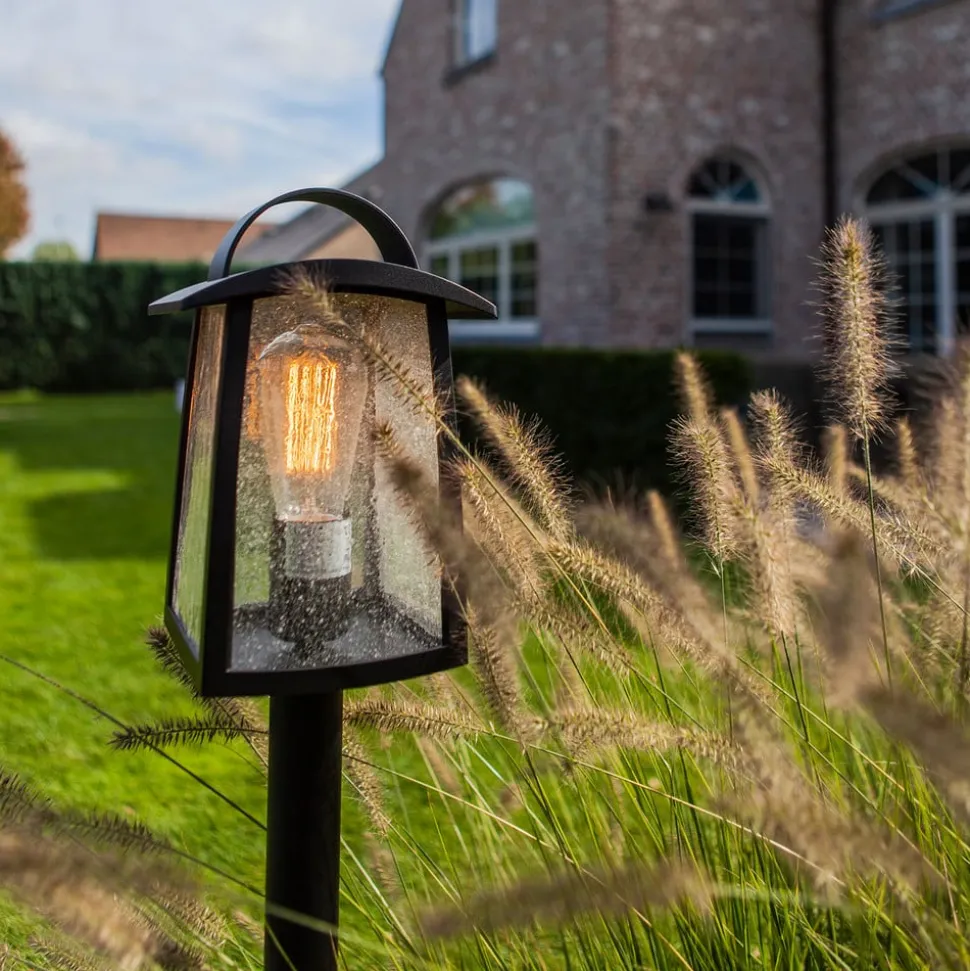 De lantaarn van de Kelsey-padarmatuur is op het eenvoudige frame getroontroond en komt daardoor optimaal tot zijn recht. Het is zeer eenvoudig en eenvoudig ontworpen en is rondom voorzien van doorzichtige kunststof schijven, die inspireren met een zeer mooie druppelversiering. Door het heldere materiaal schijnt het licht helder in alle richtingen, zodat een breed gebied rond het pad licht wordt verlicht. Het mooie uiterlijk wordt gecompleteerd door het gebruik van een gloeilamp. Deze LED-lampen zien er niet alleen goed uit, maar zijn vele malen duurzamer dan conventionele gloeilampen en hebben slechts weinig energie nodig.