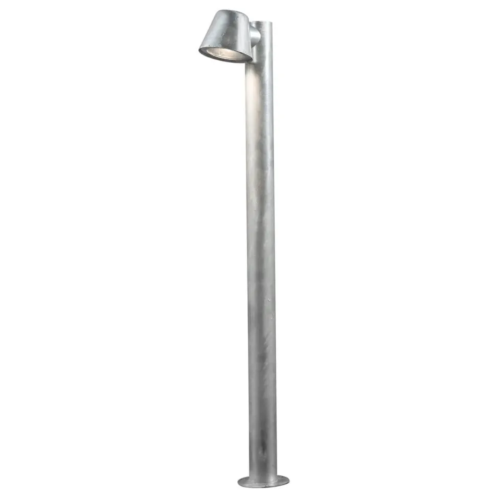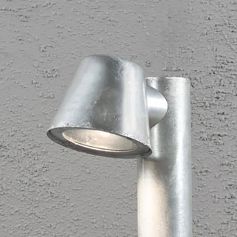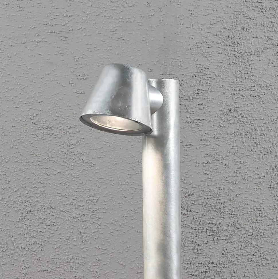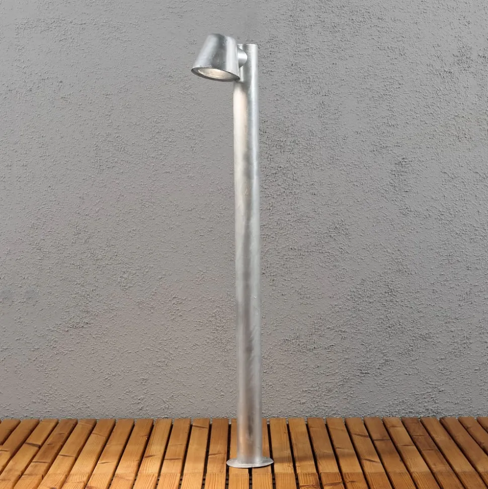 Op het eerste zicht lijkt ze een beetje zwaar. Deze lamp uit staal lijkt in ieder geval niet filigraan. Dit betekent voor de kijker, dat de padlamp met de robuuste paal en een dik ommantelde spot in buitengedeeltes wind en weersomstandigheden of mechanische belastingen goed stand houdt.
