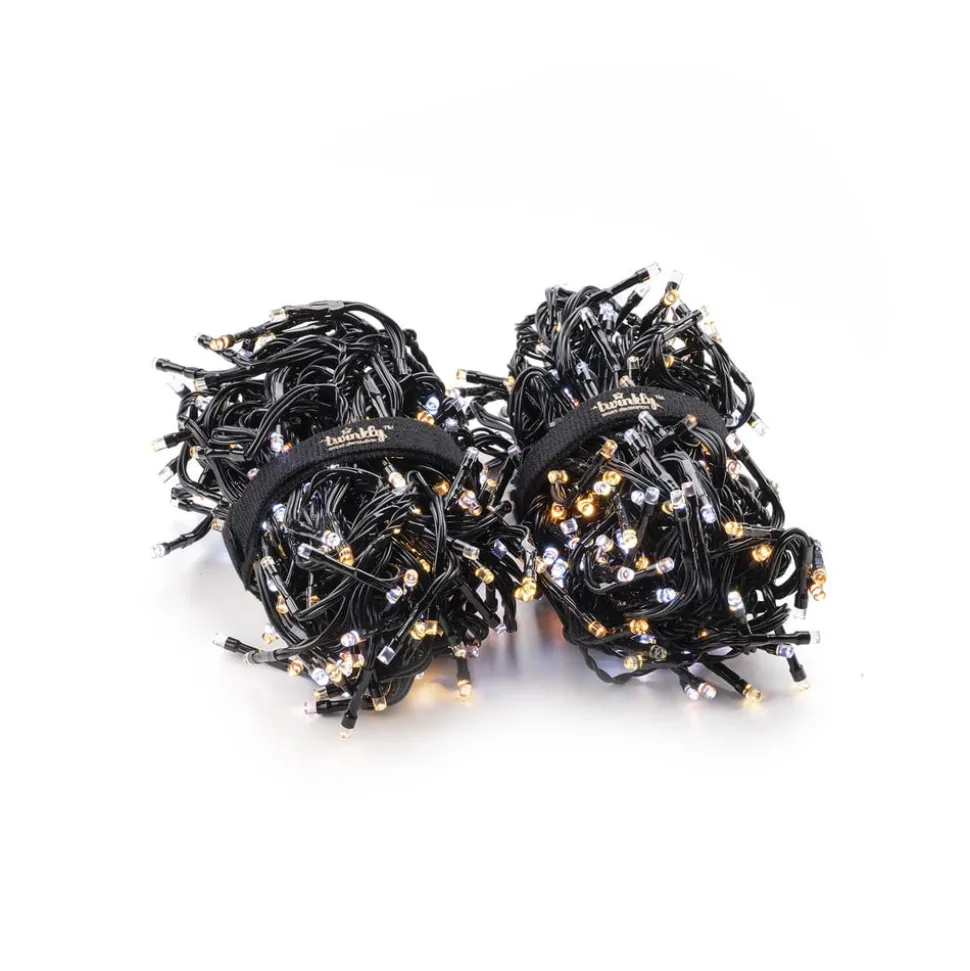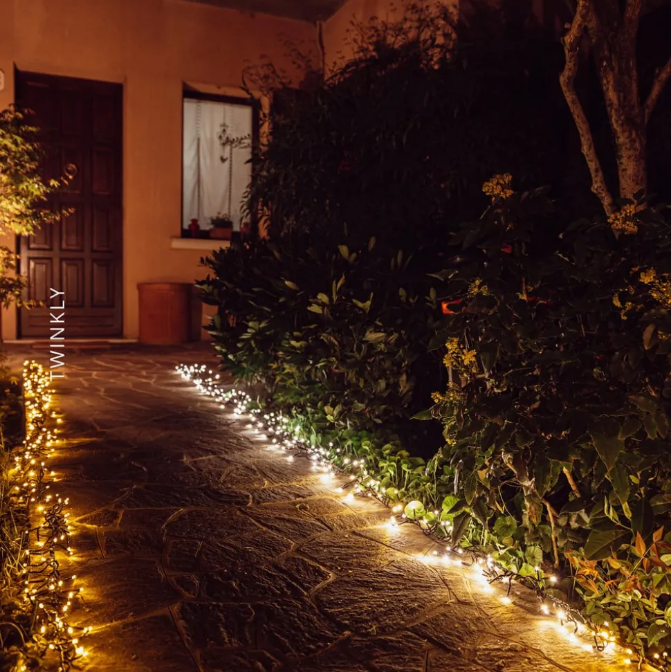 Slim configureerbare lichtdecoratie voor binnen en buiten – Twinkly CCT cluster lichtketting – Amber, warmwit, daglicht lichtkleuren Opwindend knipperen, in dynamische golven en aanzwellend en dimmend – elk patroon is mogelijk met de Twinkly LED lichtketting, waarvan de ontelbare LED’s zijn bevestigd aan kabels die zich zijdelings vertakken. Een speciale mini-Wifi en Bluetooth maken bediening via een app of slimme integratie voor bediening via spraakopdrachten mogelijk. De meegeleverde controller kan worden gebruikt om de lampjes aan en uit te zetten en om vooraf geïnstalleerde patronen en sequenties te selecteren. Deze kunnen naar wens worden bewerkt met de twinkly app; het is ook mogelijk om de lichttemperatuur, helderheid, patroon, rotatie en snelheid van verandering vrij te configureren. Hiervoor worden de individuele LED’s vastgelegd met de smartphonecamera en door de app toegewezen op basis van hun positie. Er is een webapplicatie op basis van Basis beschikbaar voor het overzichtelijk beheren en groeperen van uitgebreidere Twinkly decoratieve verlichting die uit meerdere items bestaat.