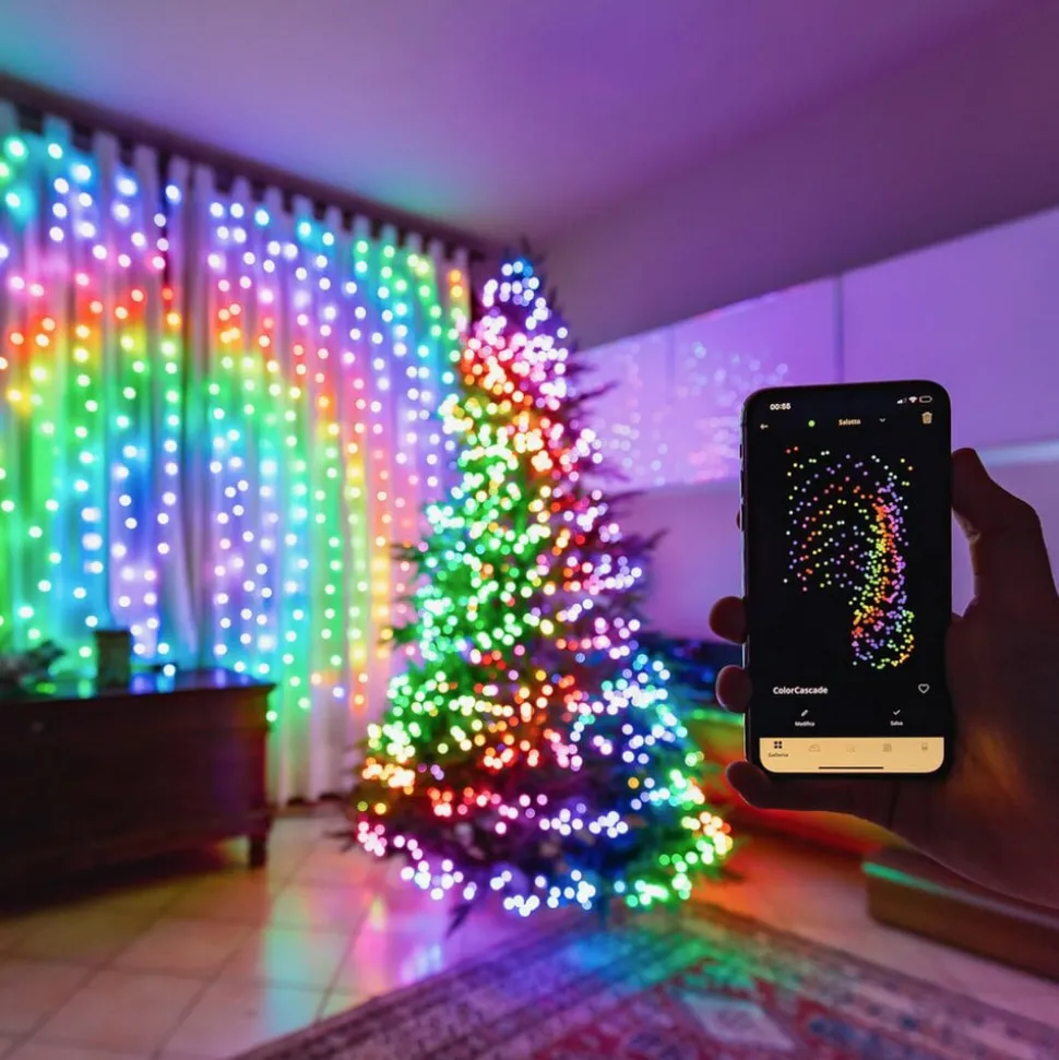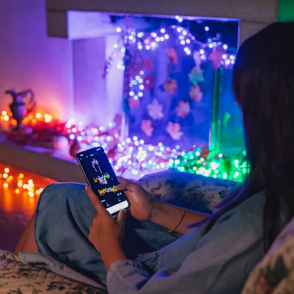 Met zijn talrijke LED’s biedt de Twinkly lichtketting een inspirerende lichtshow – zowel binnen als buiten. De lichtketen met Bluetooth, die is uitgerust met een eigen mini-wifi, kan worden bediend met een smartphone en smart home-systemen.