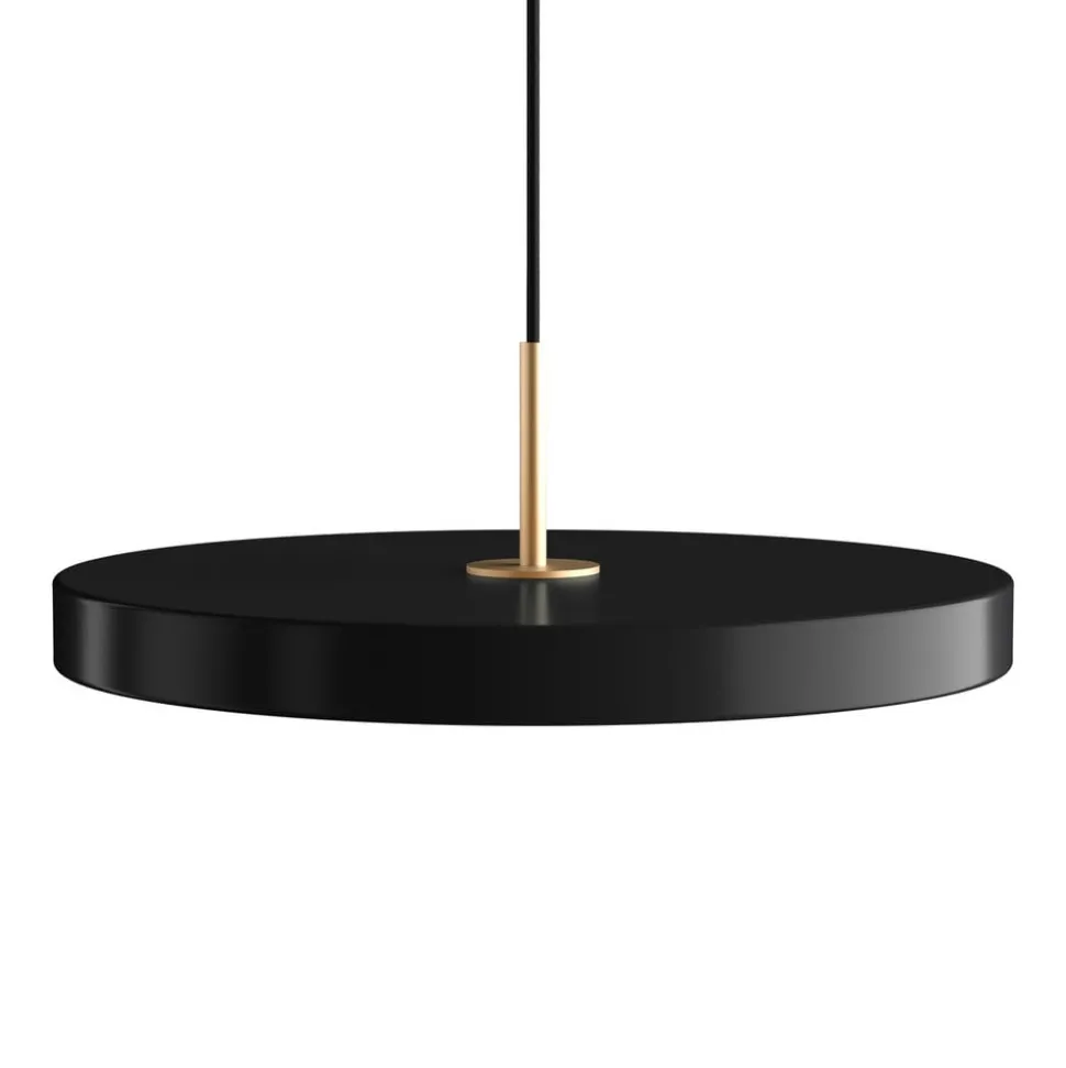 Zwart met een klein beetje messing, de LED hanglamp Asteria biedt een elegante en stijlvolle look. De lampenkap is eenvoudig en minimalistisch vormgegeven in de vorm van een schijf, die binnenin is uitgerust met de nieuwste LED-technologie. Deze straalt een zacht, warm wit licht naar beneden, dat ook gemakkelijk kan worden gedimd. Dit zorgt voor sfeervolle verlichting met een gezellige uitstraling, bijvoorbeeld boven een tafel.