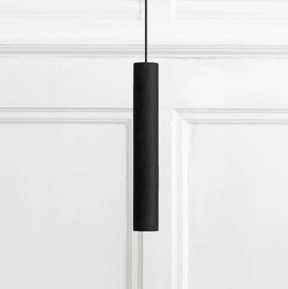 De staafvormige kap van de Chimes LED hanglamp is gemaakt van echt eikenhout. De dunne constructie van de houten kap zorgt ervoor dat het stralende licht als een schijnwerper wordt gefocust.