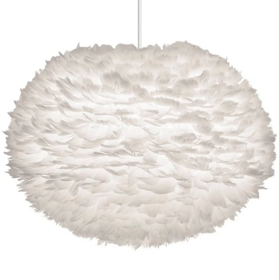 Witte hanglamp Eos Large met grote lampenkap van veren