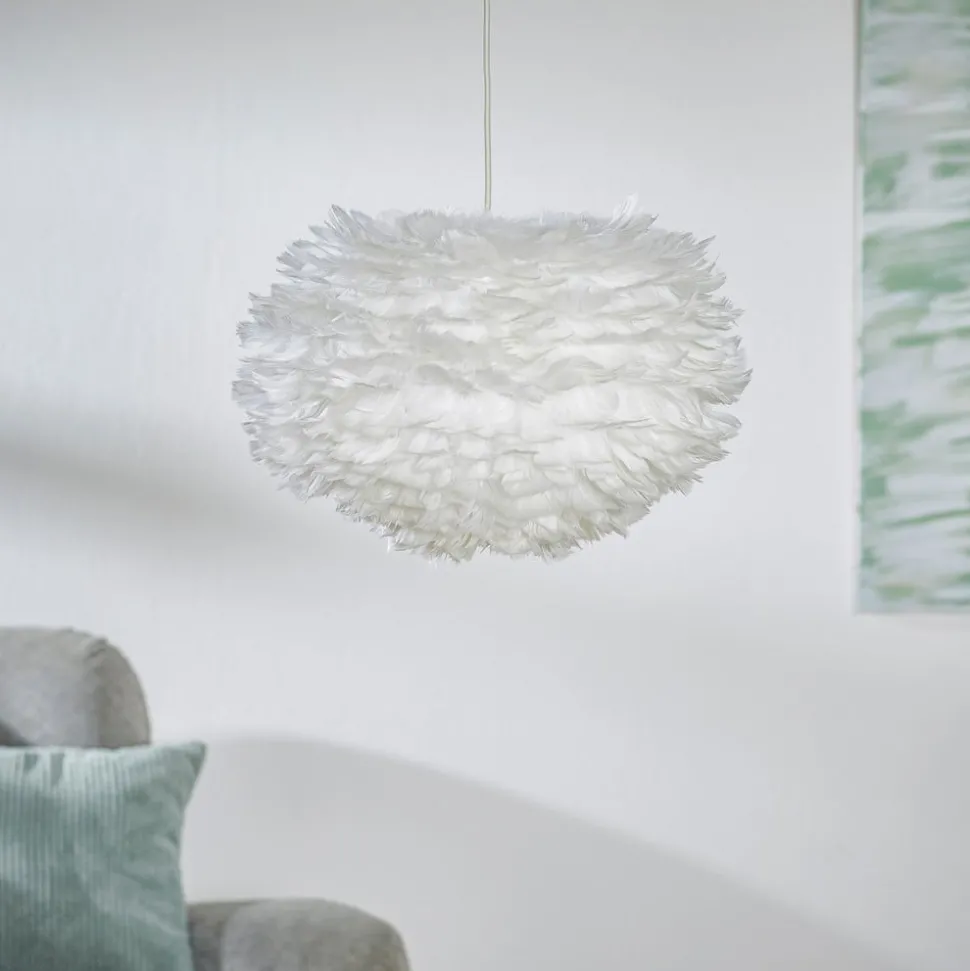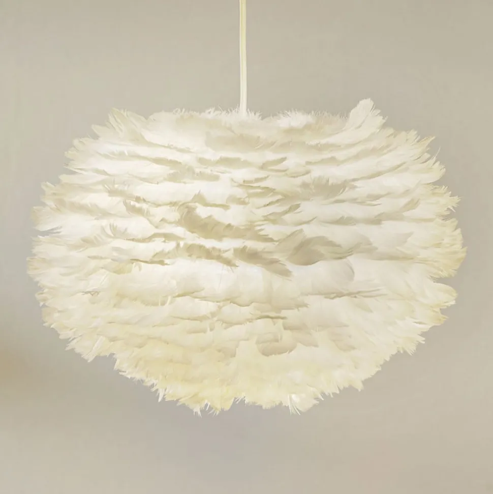 Witte hanglamp Eos medium met lampenkap uit ganzenveren