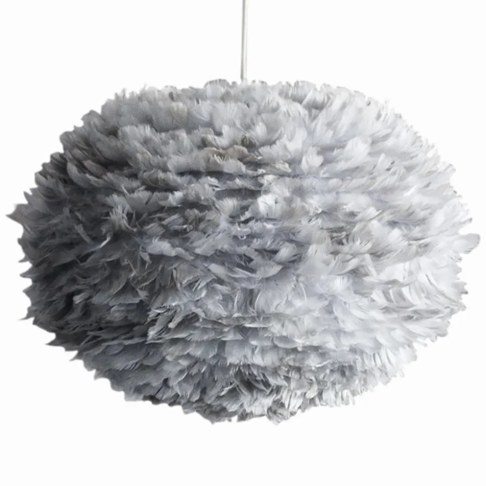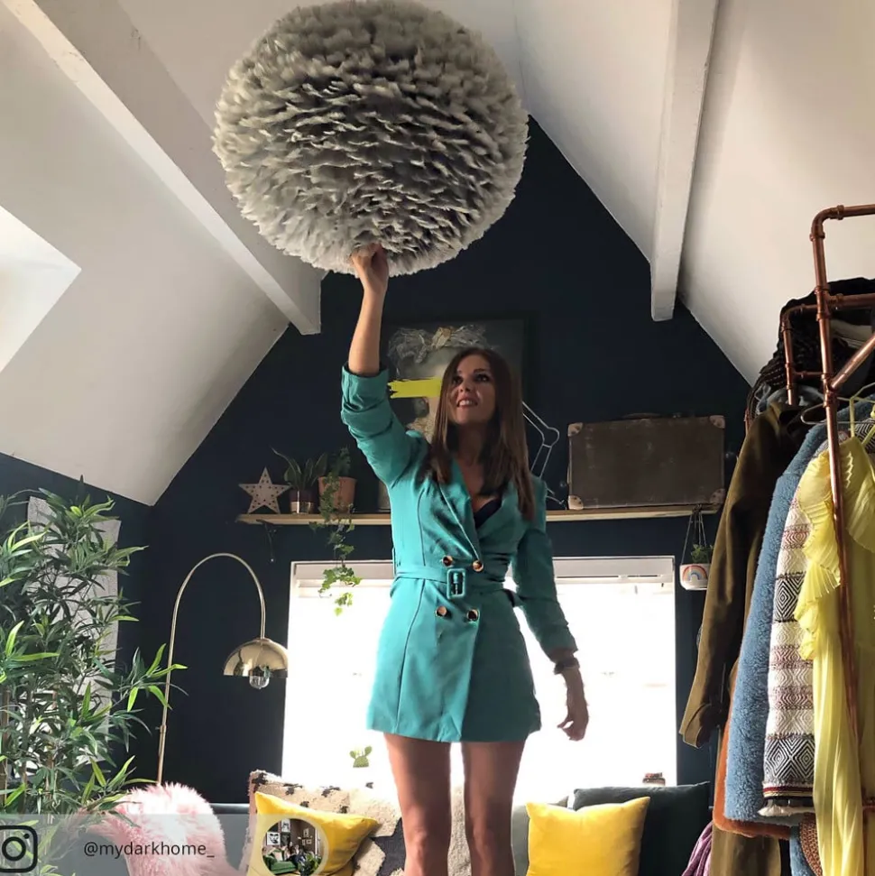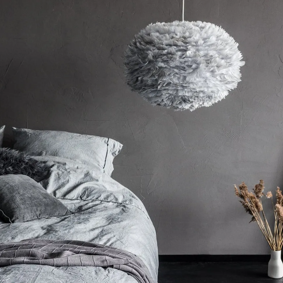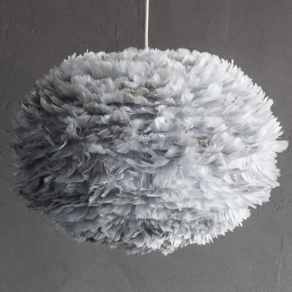 De hanglamp Eos large valt overal onmiddellijk op, enerzijds door zijn ongewone optiek en anderzijds door zijn fantastische lichteffect. Beide dankt hij aan zijn kap en het natuurlijke materiaal dat ervoor werd gebruikt. De lichtgrijze kap bestaat uit ca. 4.500 natuurlijke ganzenveren. Zo is Eos large zowel uitgeschakeld als verlicht tot een echt highlight.