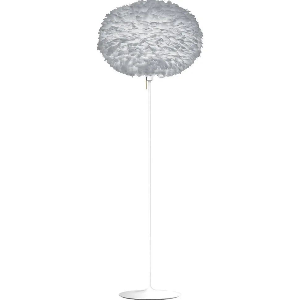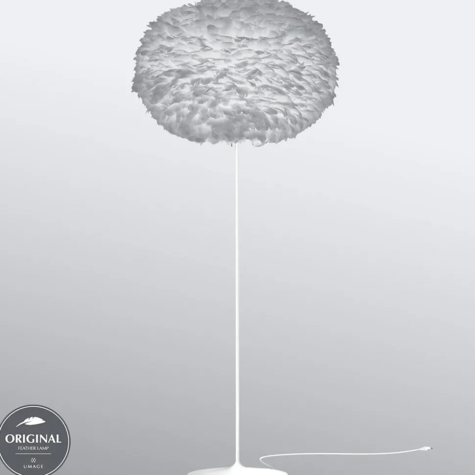 Opvallende staande lamp Eos X-large met lichtgrijze kap gemaakt van veren