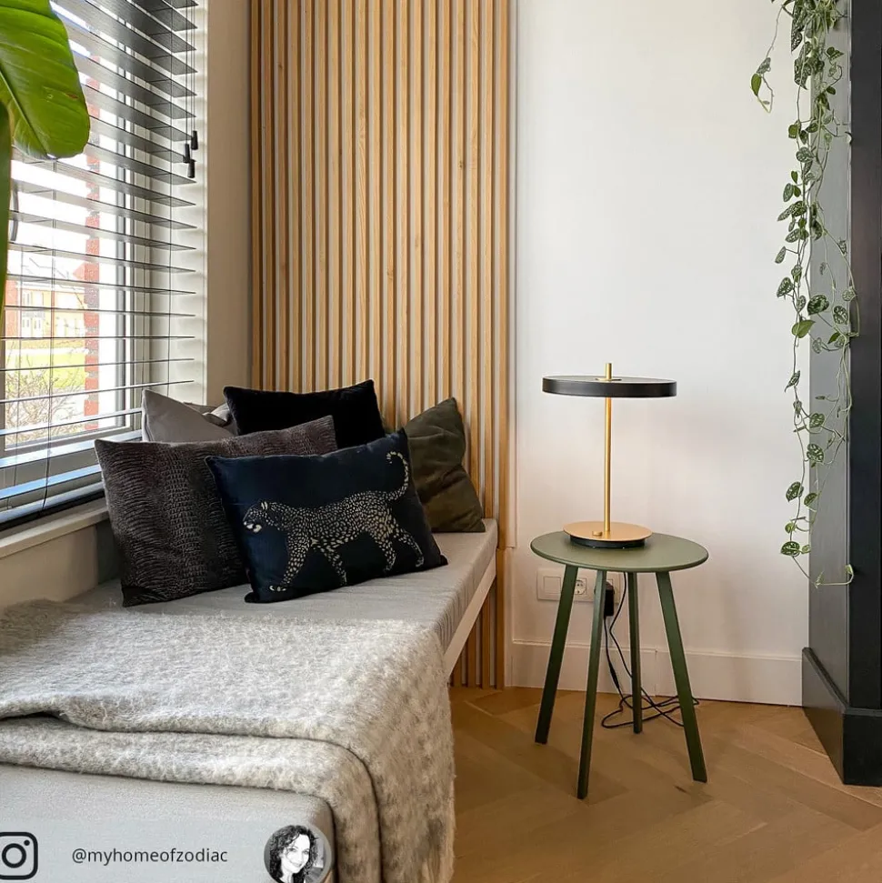 Asteria kan gebruikt worden als tafellamp, ideaal voor op het bureau of ook als bedlampje. Maar het vindt ook zijn plaats als extra verlichting op bijzettafels of ladenkasten. Naast de elegantie die de LED-tafelverlichting uitstraalt, kan deze ook overtuigen met een ander functioneel detail. Het heeft een verborgen USB-poort waarmee de smartphone of tablet kan worden opgeladen, zelfs als de lamp is uitgeschakeld.