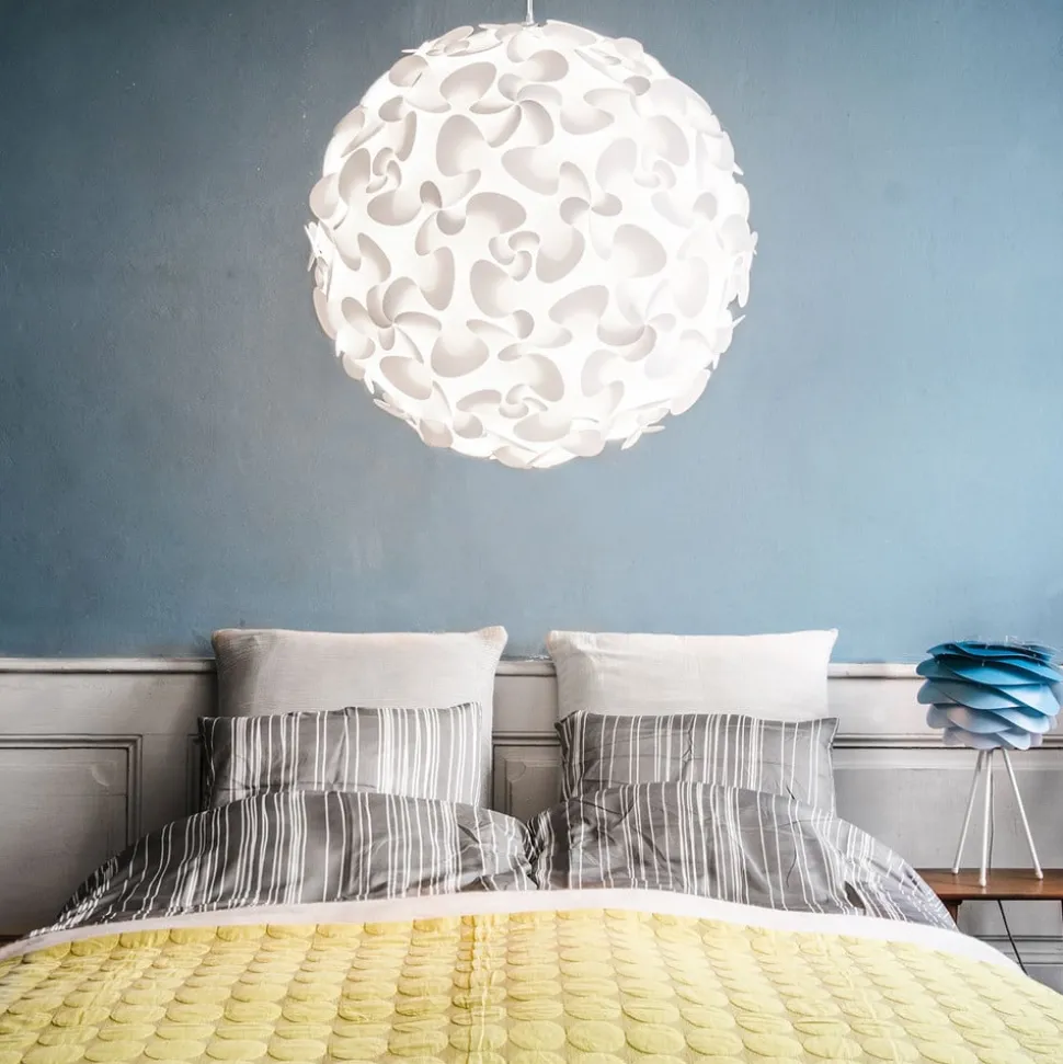 De ronde kap van de hanglamp Lora bestaat uit bijna 65 bijna identieke delen die in elkaar worden geschoven om een spannend oppervlak te creëren. Net als bij een bloemenzee zijn de afzonderlijke delen over het gehele ronde oppervlak geplaatst. De vormen kunnen nauwelijks spannender zijn – een ware ontdekkingstocht voor het oog.