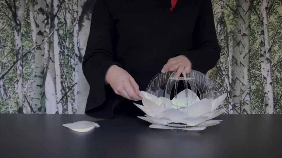 Driehoekige bladeren van onbreekbaar plastic kenmerken het uiterlijk van de schaduw van de vloerlamp Silvia medium, zodat het lijkt op een exotische plant in het totaalbeeld. Deze moderne klassieker past bij elke interieurstijl en is een decoratieve blikvanger, zelfs als hij is uitgeschakeld. Zodra het licht wordt ingeschakeld en door de openingen tussen de bladeren schijnt, ontstaat er een fascinerend lichteffect dat de hele ruimte sferisch verrijkt.
