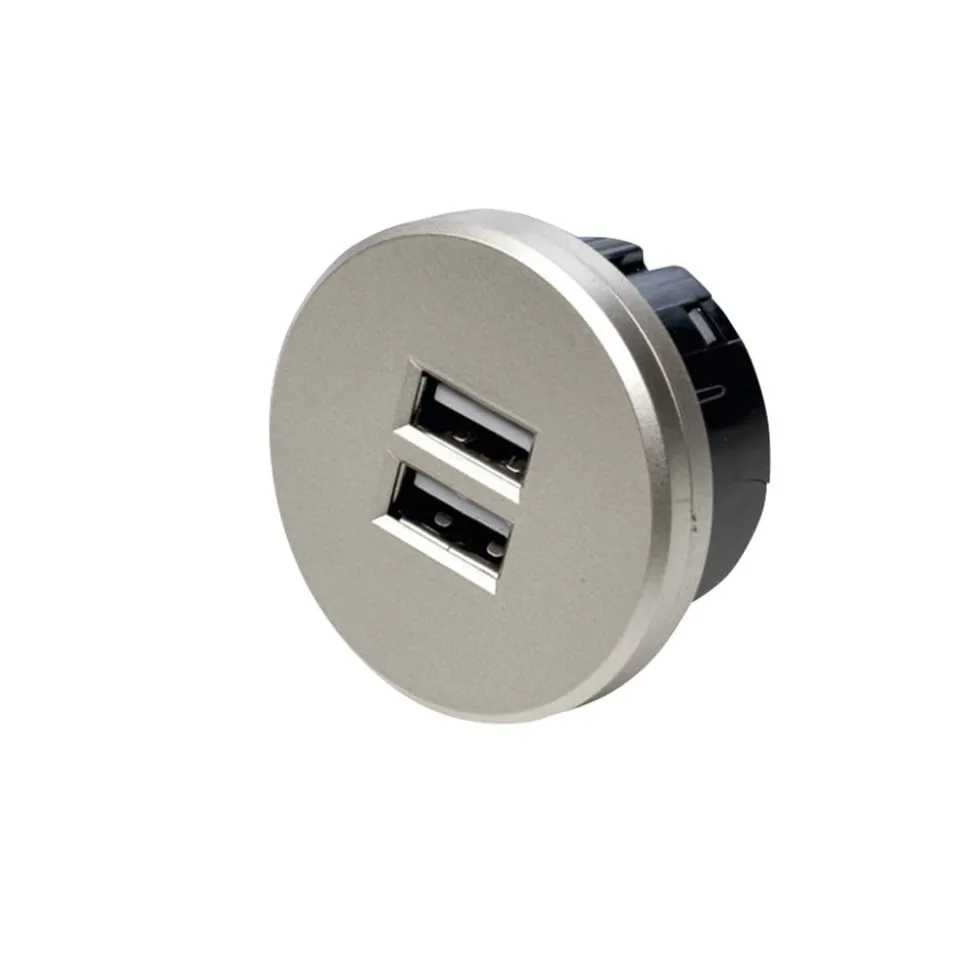 USB-dubbele stekkerdoos, rond, roestvrij staal
