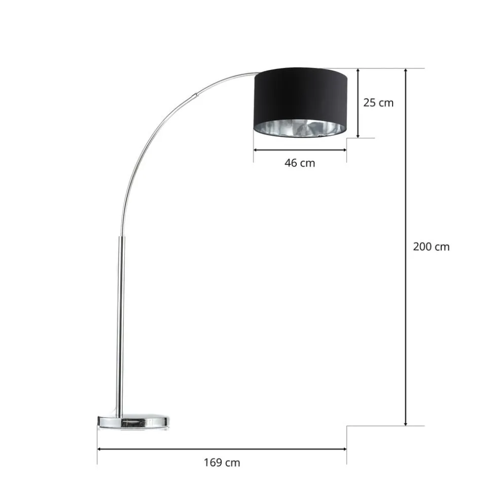 Booglamp Mara komt vooral tot zijn recht in grote, ruime woonkamers. Daar verspreidt hij dan helder licht, dat bijvoorbeeld een tafel of de leeshoek op de bank gelijkmatig verlicht. Het design van glanzend chroom en matzwarte stof geeft moderne accenten, zonder de bestaande inrichting te verstoren. Mara – een elegante gebogen lamp voor elke gelegenheid.