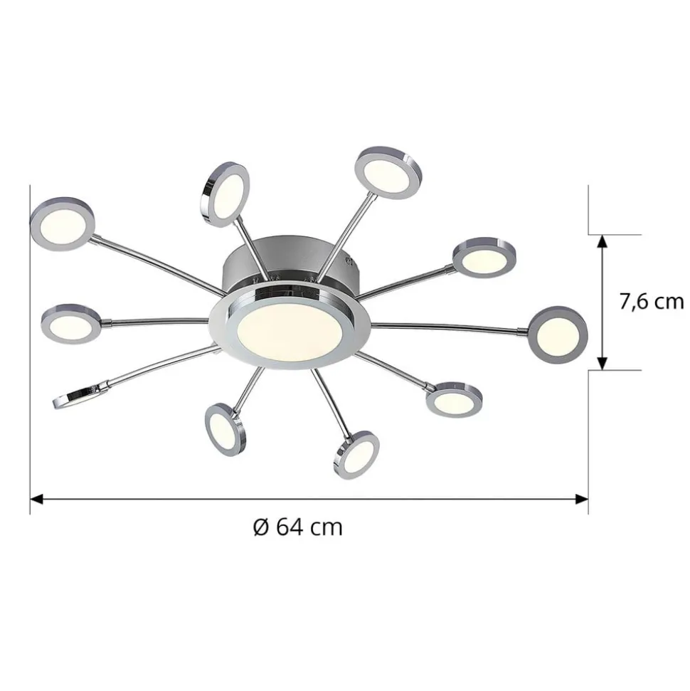 Zo mooi als zonnestralen: de LED plafondlamp Meru met afstandsbediening voor het veranderen van helderheid en lichtkleur De vorm van Meru doet eigenlijk denken aan een zon met stralen, want vanuit het lichtcentrum van de plafondlamp steken vele armen uit die eindigen met een klein, rond lichtvlak. De armatuur ziet er bijzonder stijlvol uit in moderne interieurs en biedt bovenal voldoende helderheid. Met de meegeleverde afstandsbediening kunnen de lichtkleur en helderheid worden gewijzigd, zodat deze LED plafondlamp aan verschillende eisen kan voldoen. Batterijen (2 x AAA) zijn niet inbegrepen.