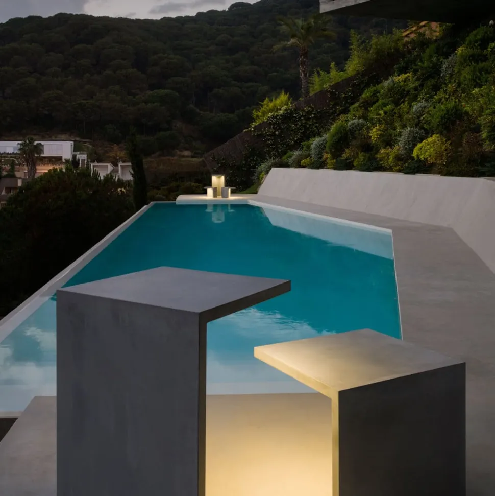 Een meubelstuk en een lamp – dat is de Empty LED lamp Een meubelstuk? Een lamp? Waarom niet gewoon allebei? – Dat is waarschijnlijk wat de Spaanse fabrikant Vibia dacht toen het het concept “Furniture meets Light” creëerde, dat ook de Empty LED buitenlamp omvat. De behuizing van de lamp is gemaakt van polymeerbeton, dat aan de ene kant de permanent geïnstalleerde LED-technologie beschermt tegen weer en wind en aan de andere kant een stabiel zit- of opslagoppervlak biedt, omdat het beton belastingen tot 150 kg kan dragen. Empty is daarom een absoluut HighLight op het gebied van functie en design – overdag biedt het zitgelegenheid en ’s avonds straalt het in een intens licht. Dit geraffineerde armatuur is ontworpen door Xuclà, die in 2015 werd bekroond met de Best of Year Award. De ontwerper creëert al enkele jaren buitenverlichting voor Vibia, die consequent wordt gekenmerkt door architecturale en minimalistische kenmerken.