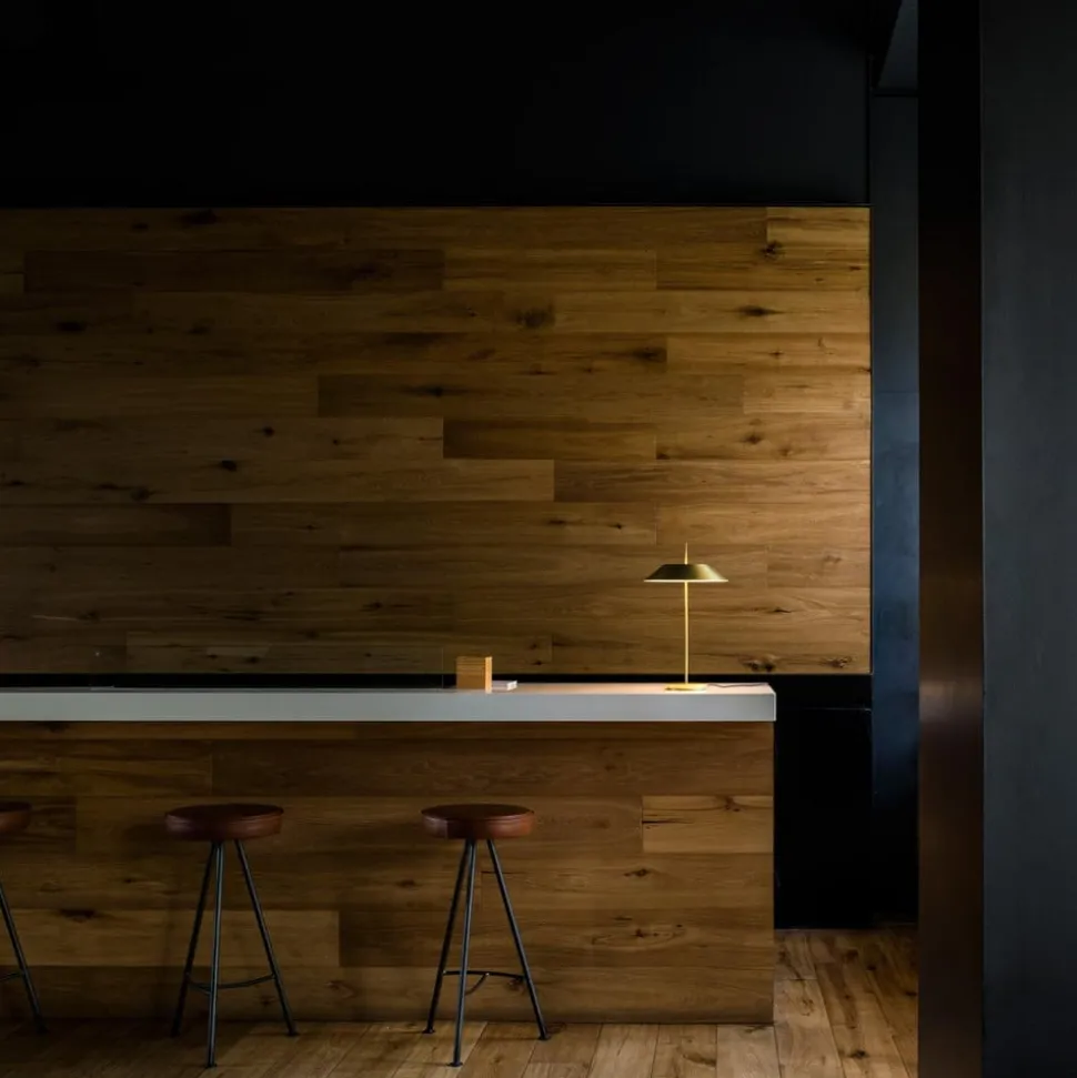 De Mayfair LED tafellamp is ontworpen door Diego Fortunato. Het is gebaseerd op het idee van een innovatieve en tegelijkertijd decoratieve tafellamp. Het bestaat uit een delicaat frame, dat volledig gelakt is in een matte goudtint, en een diffuser van polycarbonaat. Hij kan worden in- en uitgeschakeld en gedimd via een optische sensor. In de kop van het armatuur zitten twee LED-strips die een warm wit en zeer aangenaam licht geven. Met slechts 19,2 watt heeft de armatuur relatief weinig vermogen nodig om een lichtstroom van 1.841 lumen te produceren.