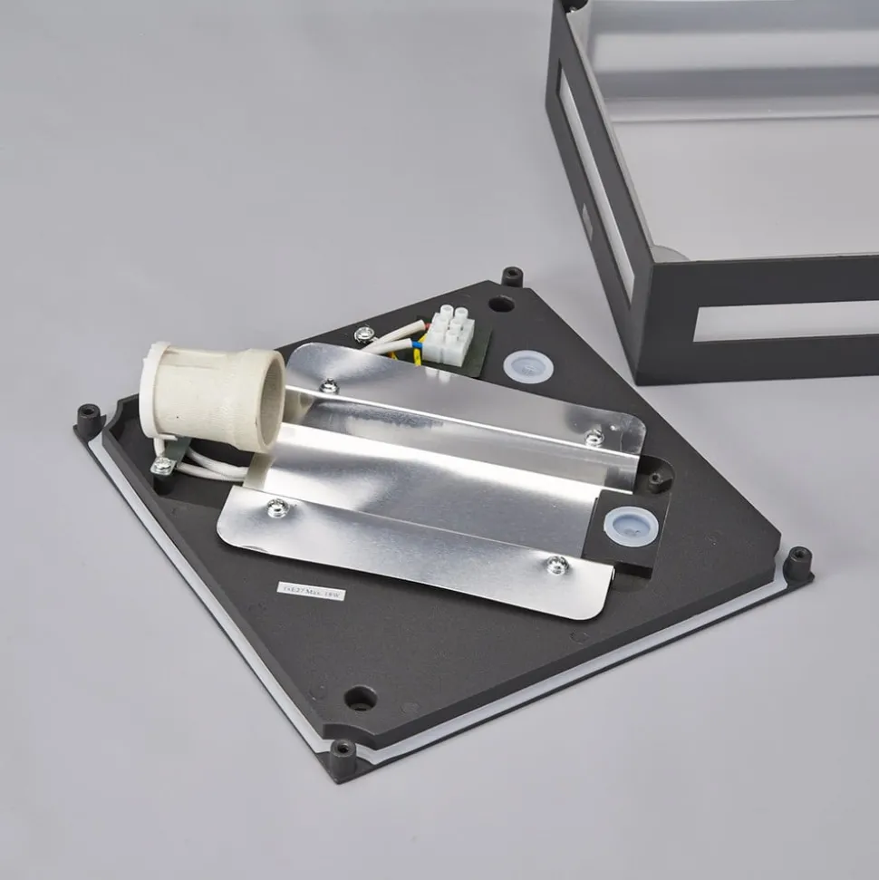 Ook buitenshuis komen plafondlampen regelmatig van pas. Denk maar aan de garage, de carport of een ander afdak. Doordat de Nerea voorzien is van beschermingsgraad IP54 is ze goed beschermd tegen het binnendringen van stof en water en kan ze zodoende probleemloos buiten geïnstalleerd worden. De lamp ziet er verder door de combinatie van grafietgrijs en opaalwit polycarbonaat mooi en decent uit. U kunt de lamp voorzien van energiespaarlampen met E27-fitting van maximaal 15 watt.