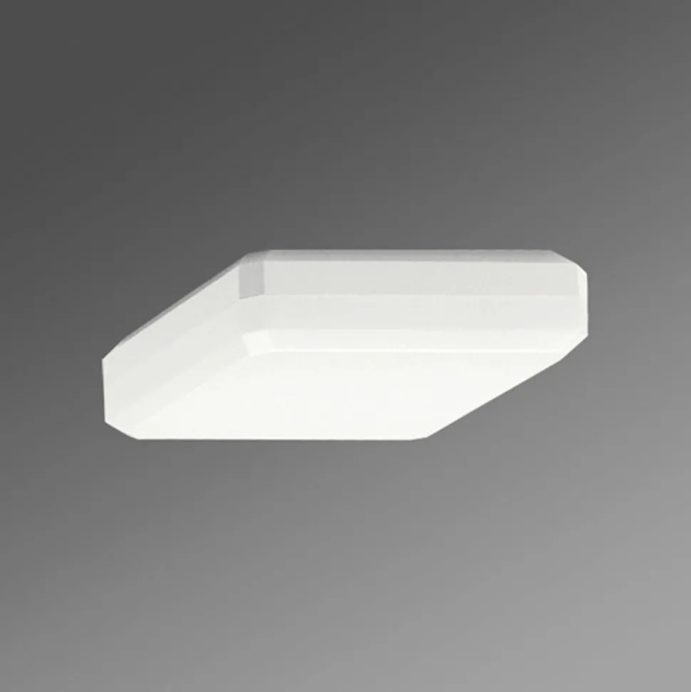 De vierkante diffusorarmatuur van recyclebaar polycarbonaat heeft een zeer vlak, licht afgeschuind behuizingsprofiel, waardoor de randen licht afgeschuind zijn. Als diffuser wordt een licht afgeschuinde, hoekstabiele, opale acrylaat diffuser gebruikt, waardoor het licht dat door de geïnstalleerde LED’s wordt uitgestraald licht diffuus lijkt, zodat verblinding wordt vermeden.
