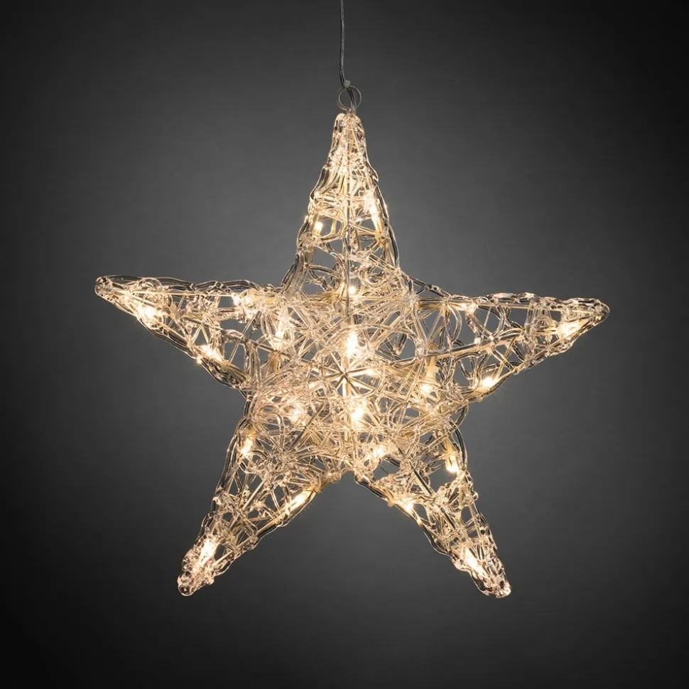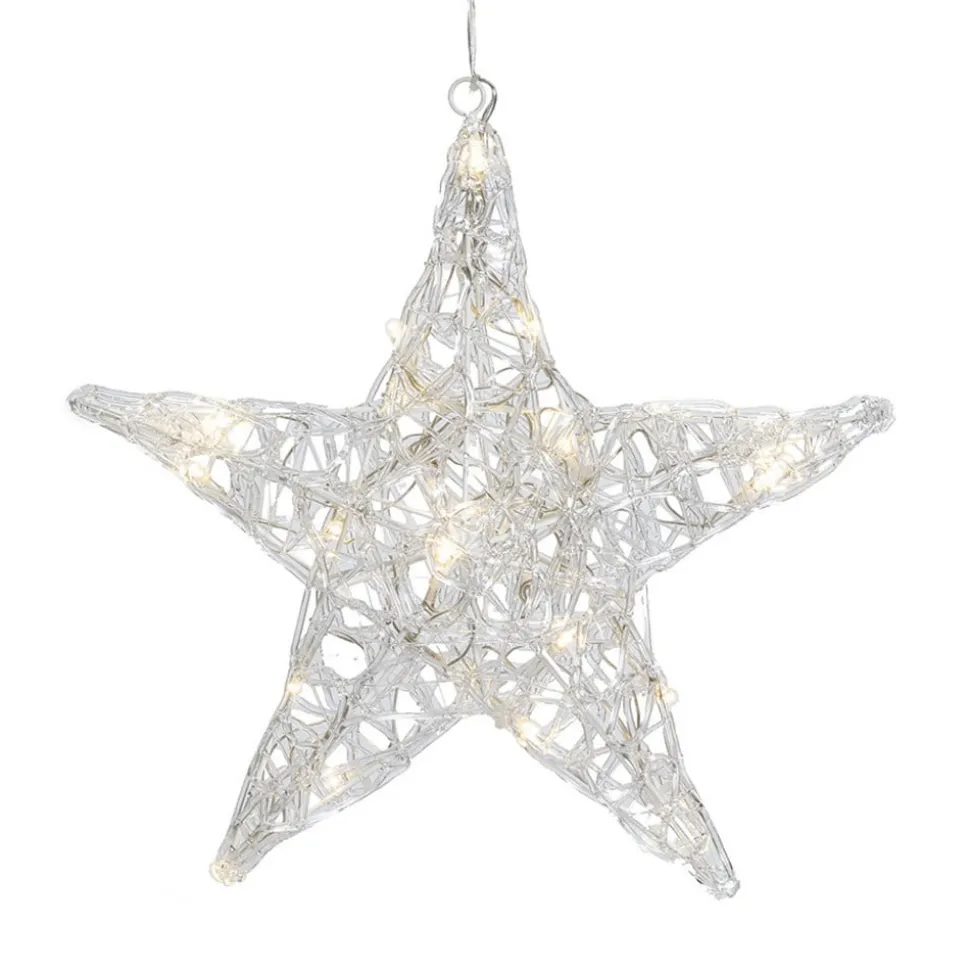 Deze mooie ster van transparant acryl is niet enkel met kerstmis een wondermooie vensterdecoratie. De 24 warmwitte LED’s zorgen voor een optimale verlichting. Een transformator voor binnen is in de levering inbegrepen.