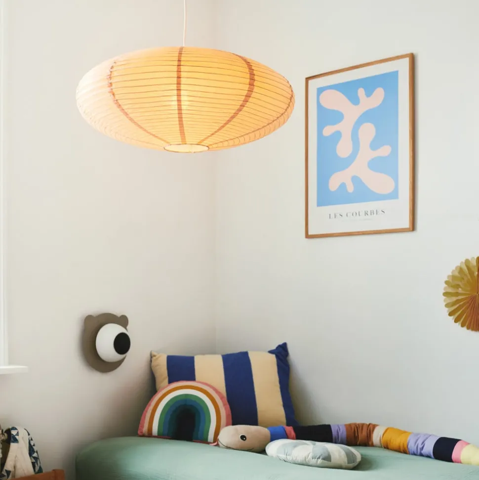Papieren kap Villo 60 is een elliptische papieren kap die een zacht, diffuus licht uitstraalt. Een ophanging met fitting en baldakijn is niet inbegrepen.
