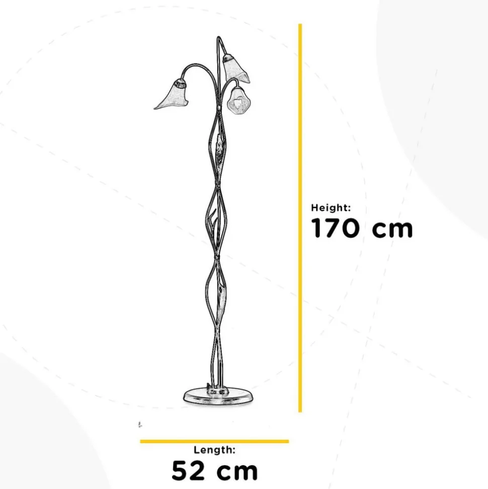 Vloerlamp Alga: Florentijnse elegantie De vloerlamp Alga combineert Florentijnse elegantie met artistiek vakmanschap en is daardoor een hoogtepunt in elke woon- of slaapkamer. De lamp is gemaakt van hoogwaardig ijzer en glas en straalt tijdloze schoonheid uit in de kleuren brons en amber. Het 3-lamps ontwerp zorgt voor een harmonieuze lichtverdeling die elke kamer baadt in een warme en uitnodigende sfeer. Bijzonder opmerkelijk is de productie in Italië, wat staat voor de hoogste kwaliteit en precisie.