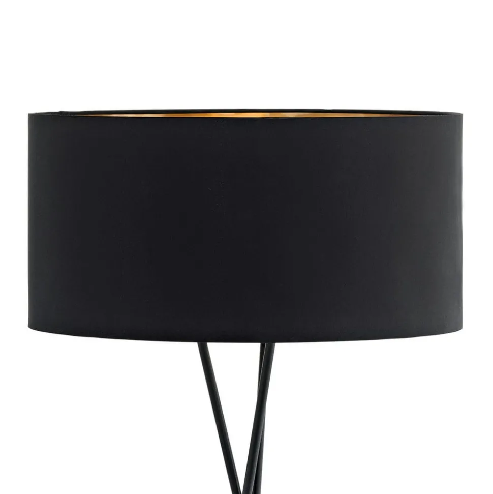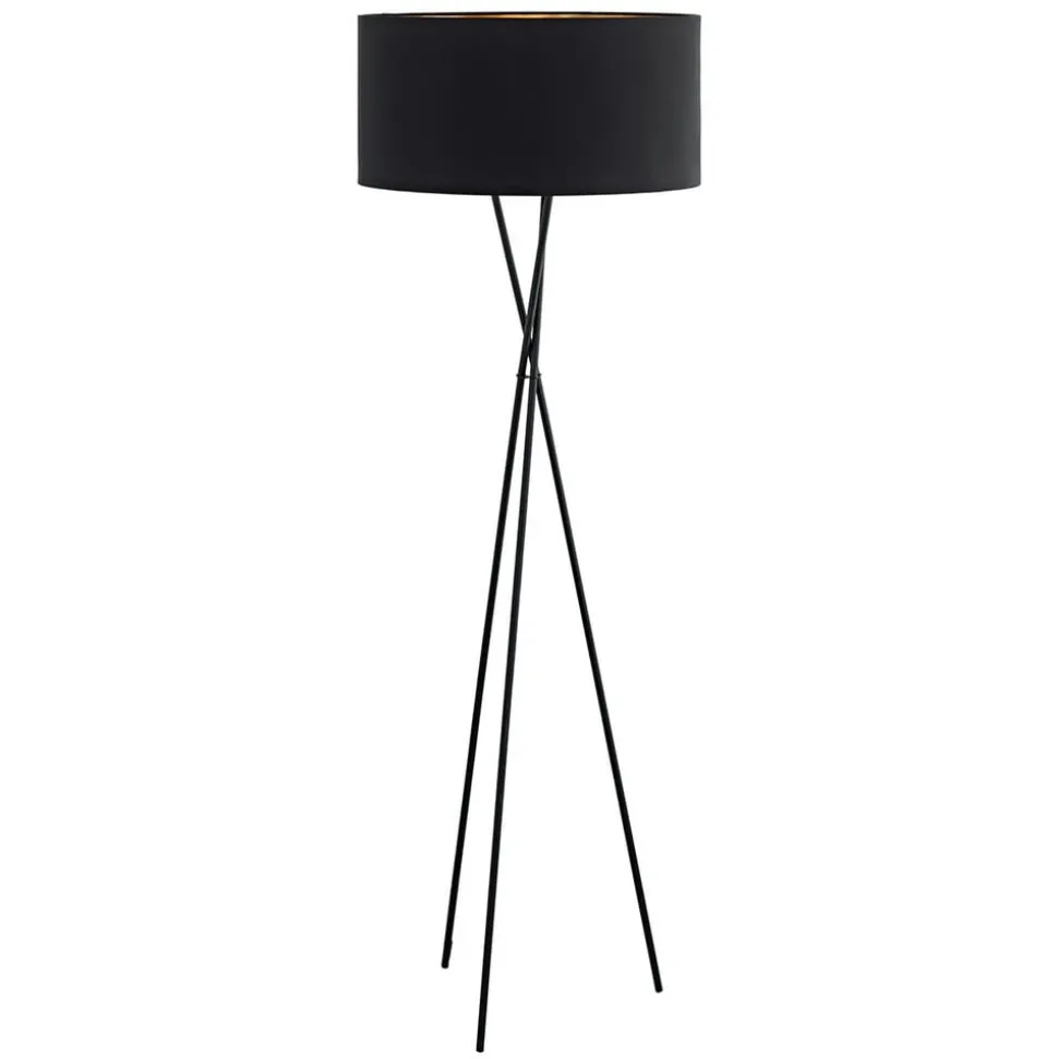 De vloerlamp Fondachelli presenteert zich volledig in het zwart met een delicaat ogend, driepotig frame van staal en een cilindervormige, platte kap van stof. De binnenzijde van de kap is gekleurd in trendy koper, wat niet alleen resulteert in een edele uitstraling, maar ook in een zeer fraai lichteffect. De vloerlamp is uitgerust met een voetschakelaar in de toevoerleiding voor gemakkelijke bediening en kan worden uitgerust met elk type E27 lamp (gloeilamp niet inbegrepen).