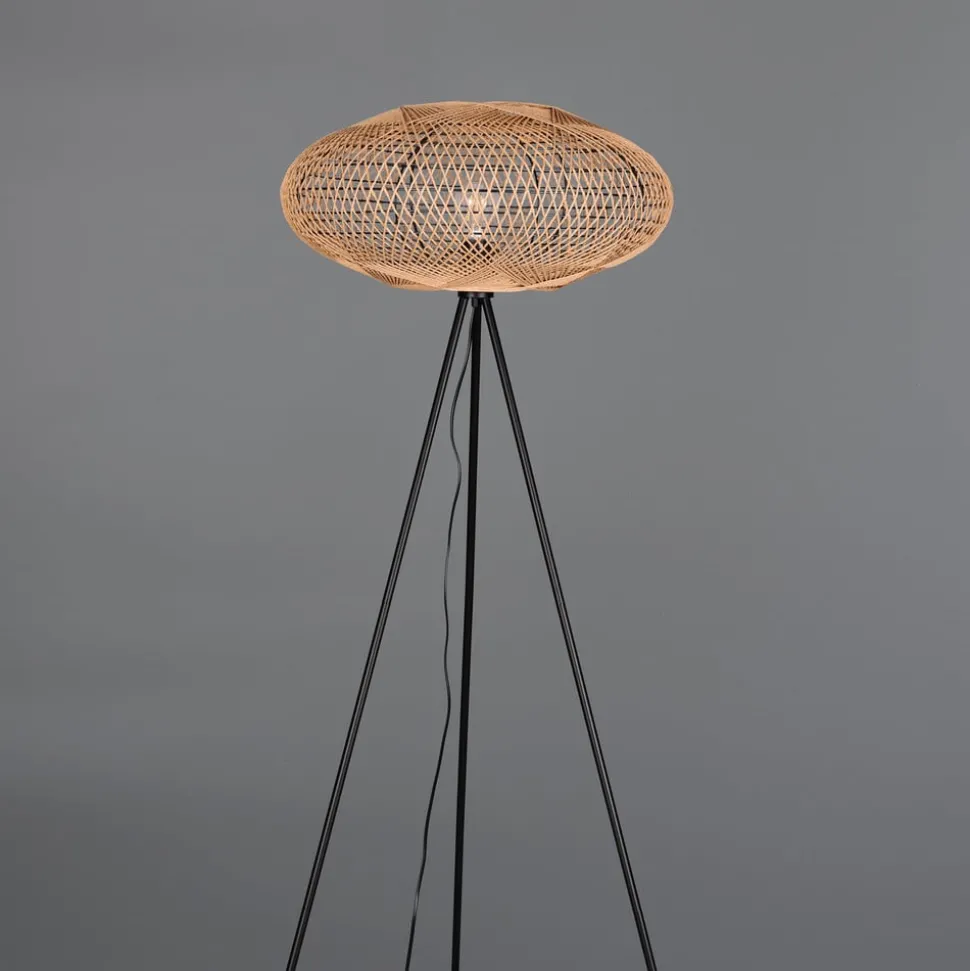 Hedda vloerlamp met smal frame en kap van sisal Het kenmerk van de Hedda vloerlamp is de ovale kap van sisal. Deze bruine natuurvezel is zeer robuust, veelzijdig en geeft de lamp een opvallende natuurlijke uitstraling. Hedda kan flexibel worden gebruikt en bijvoorbeeld als lichtbron voor de woonkamer. Het sisalweefsel creëert prachtige licht- en schaduweffecten in de woonkamer. Omdat de lichtbron gedeeltelijk zichtbaar is, is het een goed idee om hem als decoratieve lichtbron te gebruiken. De vloerlamp wordt in- en uitgeschakeld met een voetschakelaar die in het snoer is geïntegreerd.