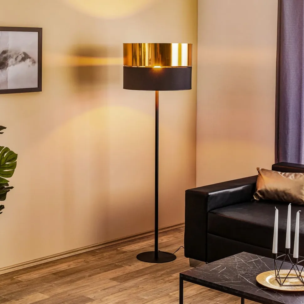 De vloerlamp Hilton in zwart en goud combineert tijdloze elegantie met een moderne stijl die in elke woon- of eetkamer accenten legt. Deze lamp is gemaakt van hoogwaardige materialen zoals textiel en metaal en biedt niet alleen een aantrekkelijk uiterlijk, maar ook een duurzame kwaliteit. De harmonieuze combinatie van zwarte en gouden elementen geeft elke ruimte een luxe sfeer die zowel rustgevend als inspirerend werkt.