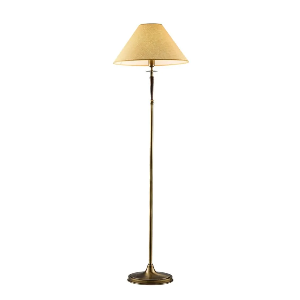 De vloerlamp HLM-9009-1E met textielkap combineert edele materialen zoals metaal, textiel en hout tot een harmonieus geheel. De combinatie van een antiek gouden frame en een beige textielkap geeft elke ruimte een warme en uitnodigende sfeer. Deze lamp is ideaal voor de woonkamer of slaapkamer en zorgt voor stijlvolle accenten die zowel klassiek als tijdloos zijn.