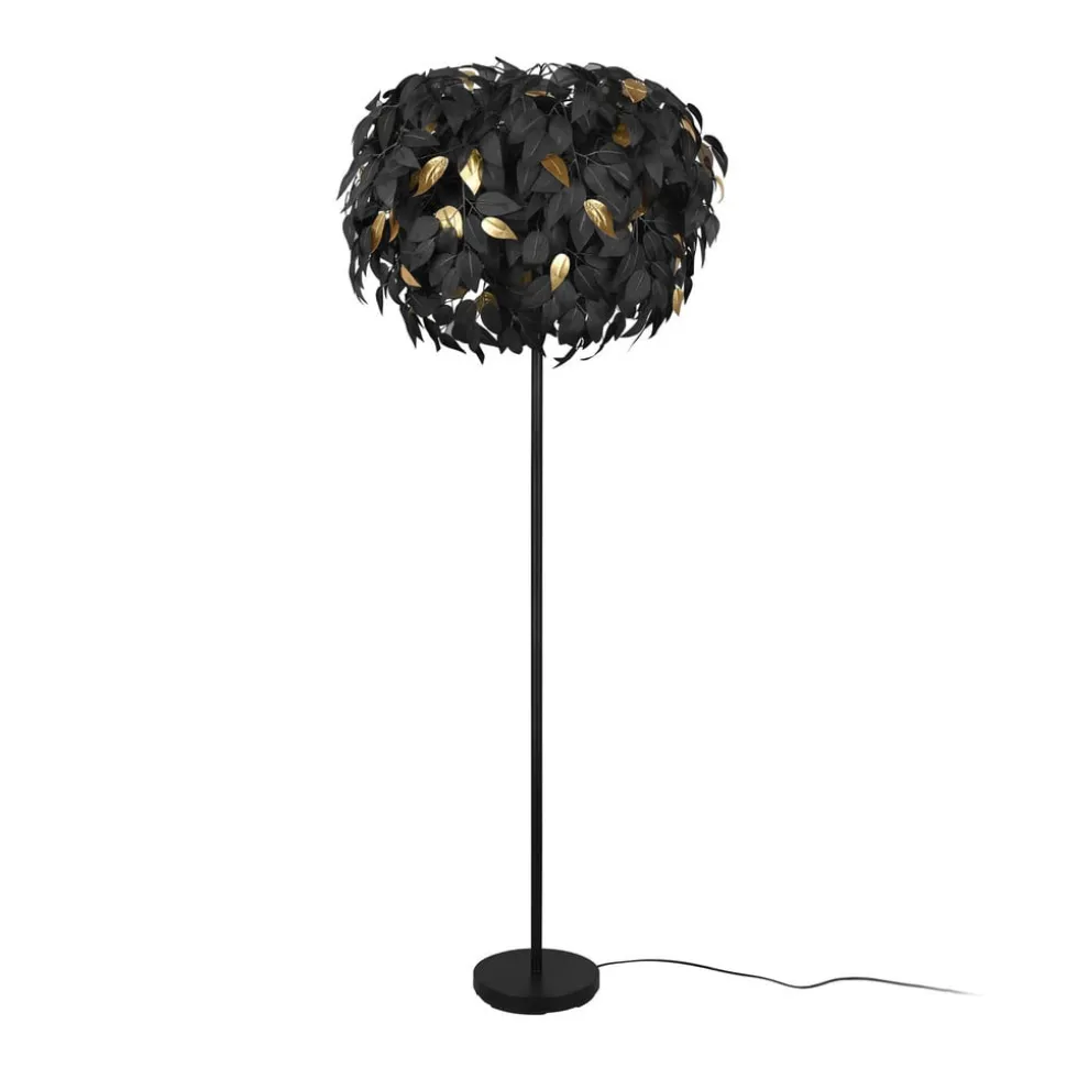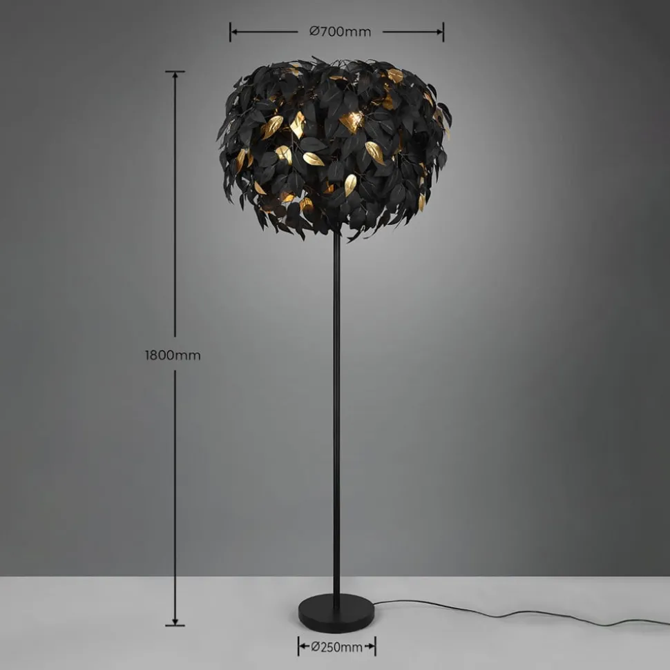 Vloerlamp Leavy, zwart/goud, hoogte 180 cm, kunststof