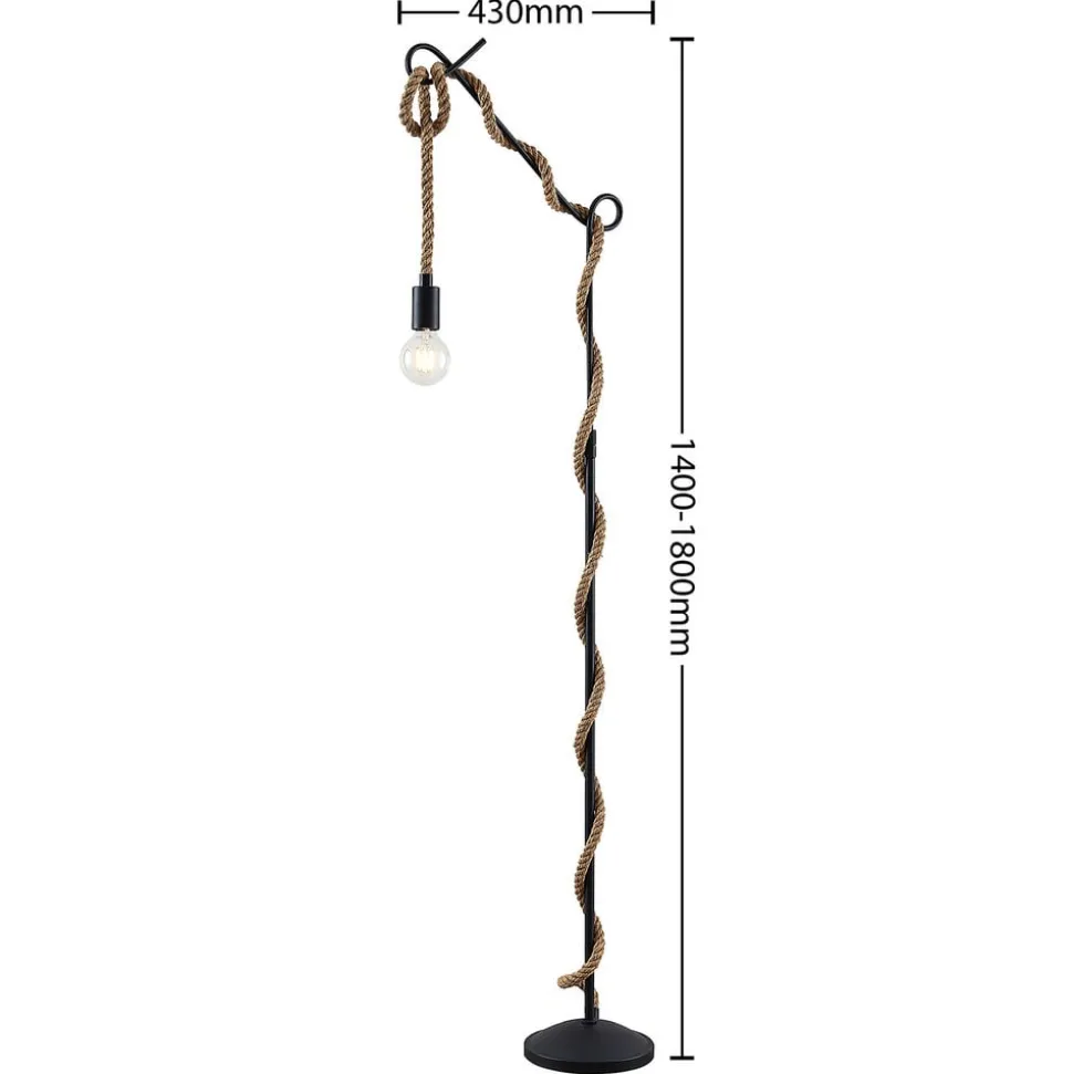 Vloerlamp Lucande Ropina, hoogte 180 cm, zwart, henneptouw
